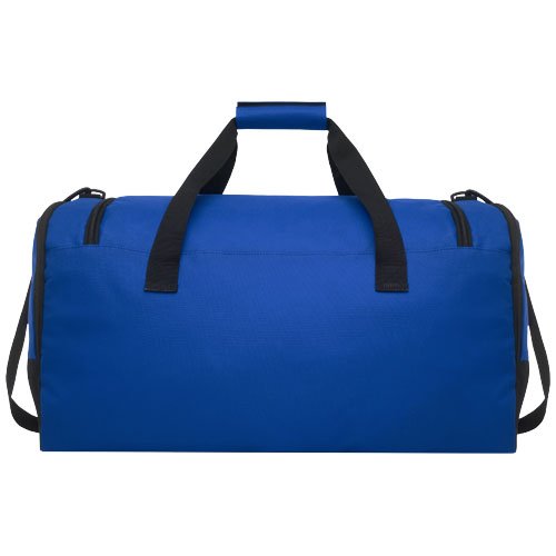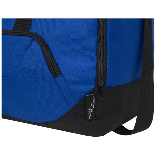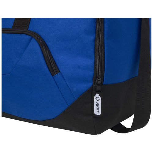 Borsone resistente, realizzato in plastica riciclata post-consumo al 100%, che contribuisce alla riduzione dei rifiuti di plastica. Dispone di un ampio scomparto principale e tasca frontale con cerniera, tracolla e maniglie imbottite. Per realizzare questa borsa, sono state riciclate circa 27 bottiglie.