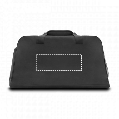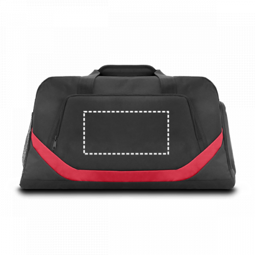 Borsone sportivo in 300D e 1680D con interno foderato e base semirigida. Dotato di 1 tasca frontale con chiusura e 2 tasche laterali: 1 tasca in rete e una seconda tasca per calzature, con chiusura. Tracolla regolabile e con rinforzo imbottito