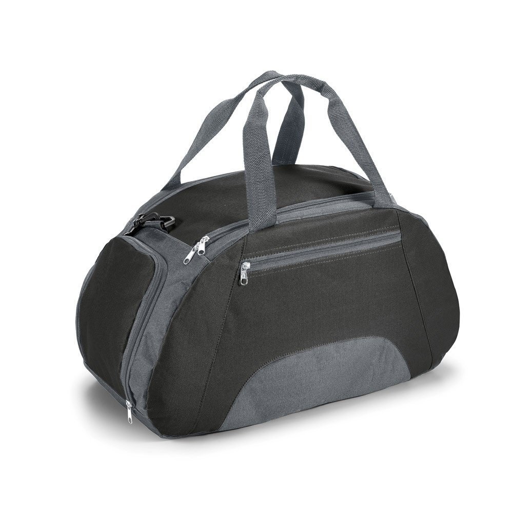 Borsone sportivo in 600D con divisorio interno, tasca anteriore e fondo con base semirigida. Tasca frontale e tasca laterale per scarpe, entrambe con zip. Tracolla regolabile.520 x 300 x 255 mm