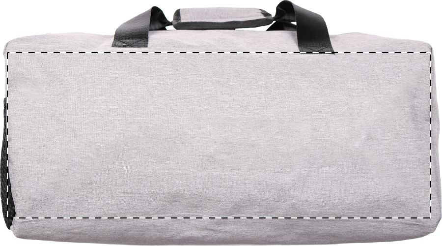 Borsone sportivo con scomparto interno con chiusura a zip, tasche laterali in rete e tracolla regolabile, materiale poliestere 600D.