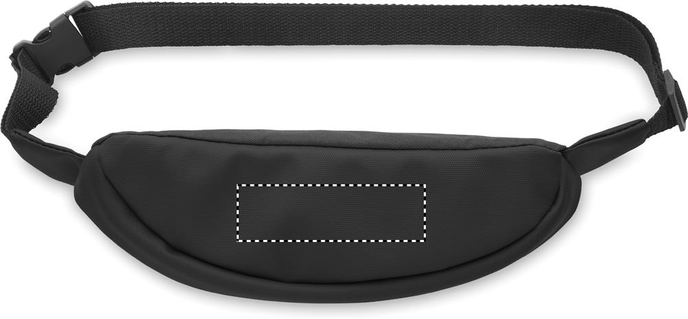 Marsupio con rivestimento in PU in poliestere 600D RPET, fodera in poliestere 210D RPET e tasca frontale con cerniera.