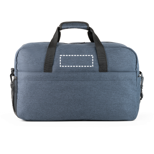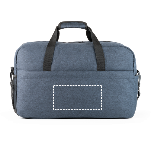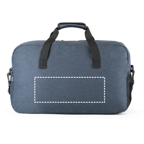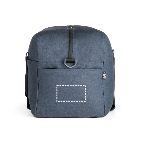 Borsa sportiva in 600D rPET con fodera interna e tavola semirigida sul fondo. Scomparto principale e tasca frontale con cerniera e due tasche laterali, una in rete e l'altra con cerniera. La borsa ha tracolla imbottita in fettuccia staccabile e regolabile e manici con rinforzo