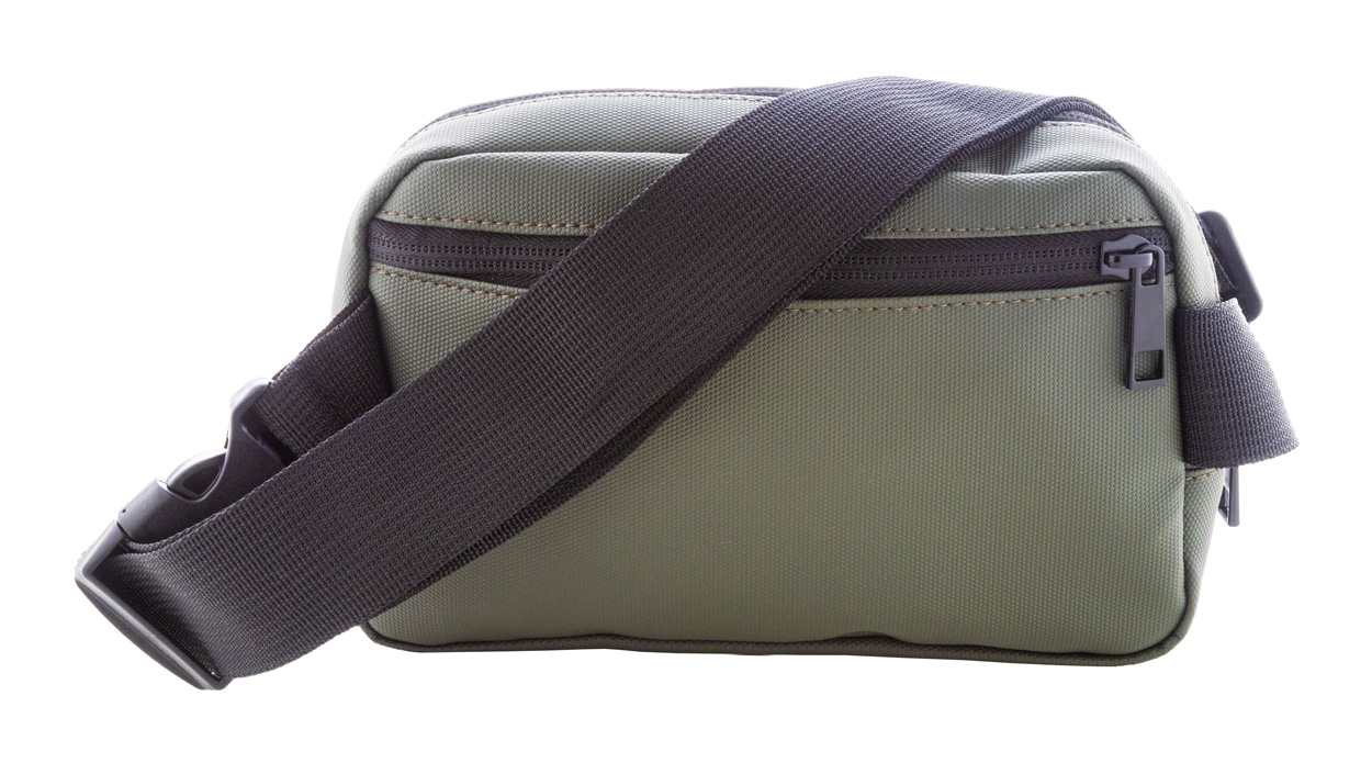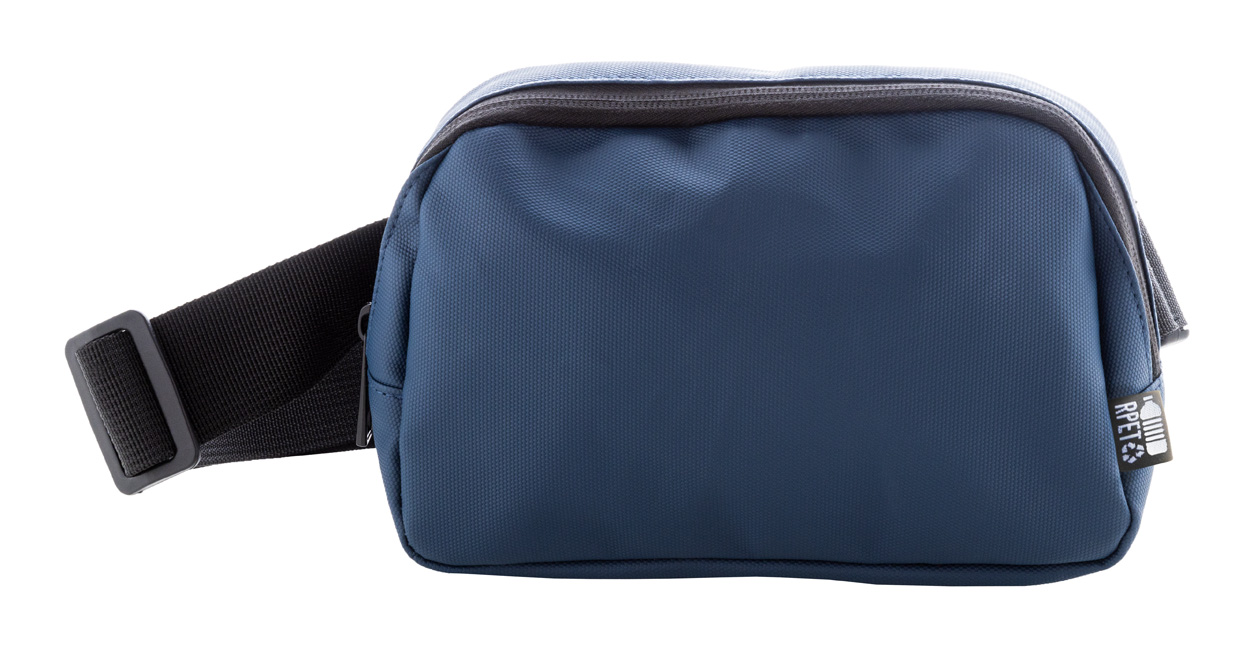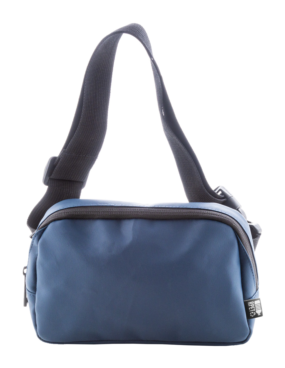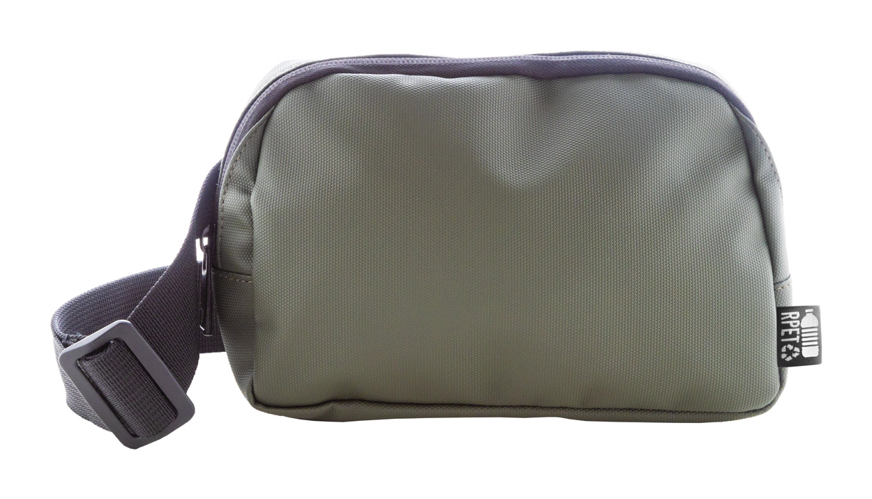 Marsupio impermeabile in poliestere 600D RPET con 2 scomparti chiusi da cerniera, tasche interne in rete e tracolla regolabile. Rivestimento in PU ed etichetta RPET.