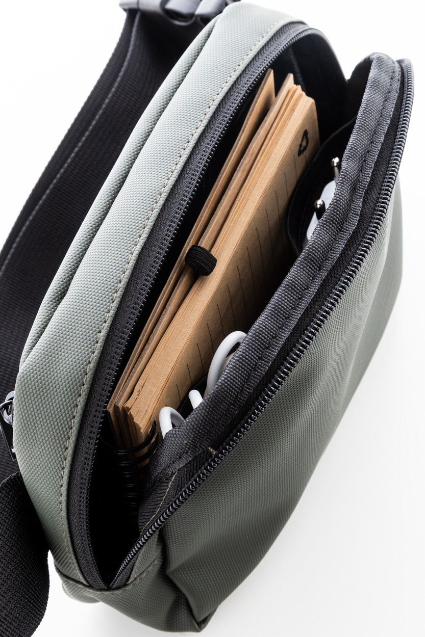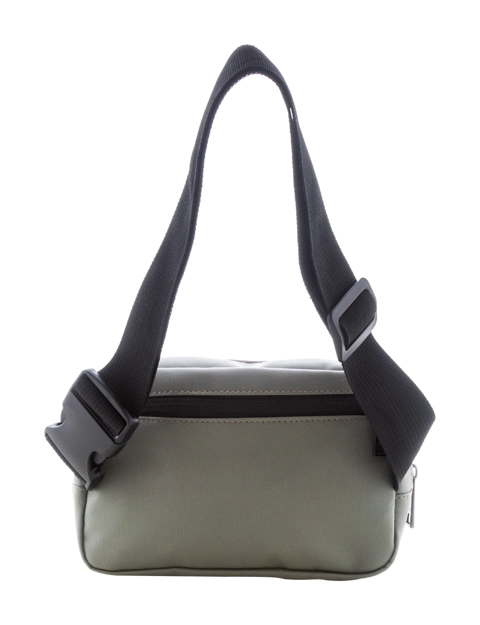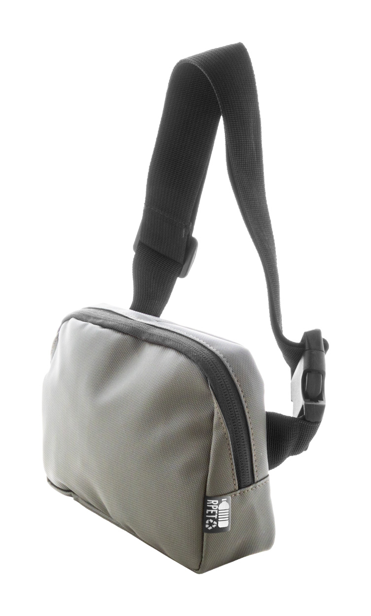 Marsupio impermeabile in poliestere 600D RPET con 2 scomparti chiusi da cerniera, tasche interne in rete e tracolla regolabile. Rivestimento in PU ed etichetta RPET.
