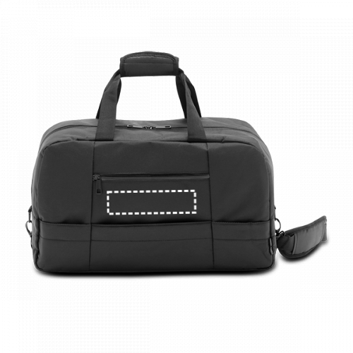 Borsone sportivo in 840D jacquard e 300D e con interno foderato. Tasche anteriori e fondo con placca semirigida e tracolla regolabile, con rinforzo imbottito