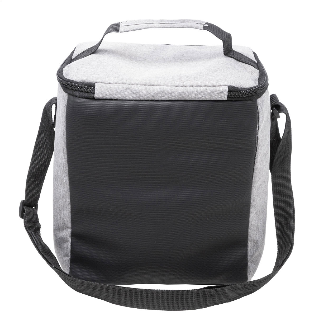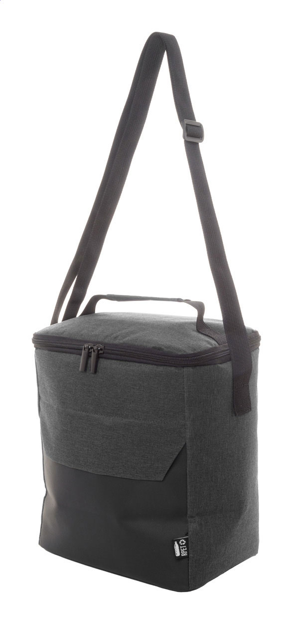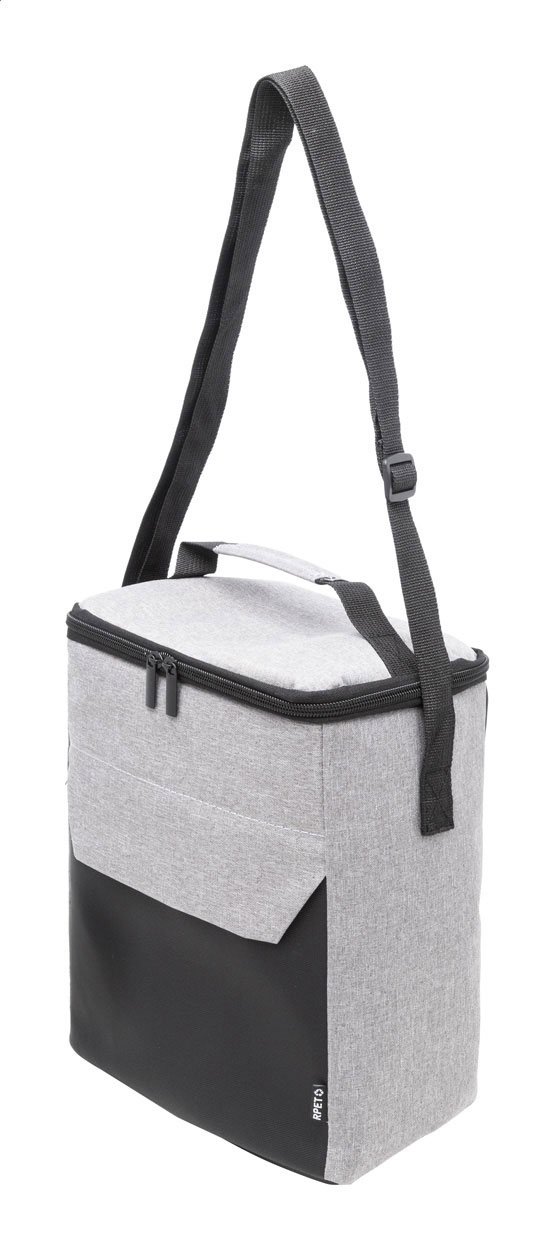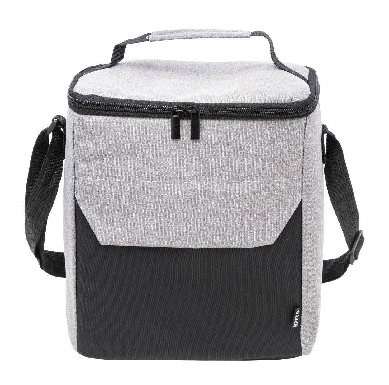 Borsa termica in poliestere 600D RPET con cerniera, dettagli in PU ed imbottitura in PEVA. Con maniglia, tracolla regolabile, piccola tasca frontale ed etichetta RPET