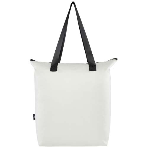Progettata per la comodità e la praticità, questa borsa termica leggera ma resistente si adatta a qualsiasi esigenza ripiegandosi ordinatamente in un marsupio compatto dotato di un passante per essere appeso o trasportato in giro facilmente, rendendola perfetta per i picnic, la spesa o le avventure all'aperto. Presenta uno scomparto principale con cerniera e lamina di alluminio, una tasca anteriore aperta e due lunghi manici fettuccia di qualità liscia. Realizzato in poliestere riciclato senza PVC. Capacità: 15 litri.
