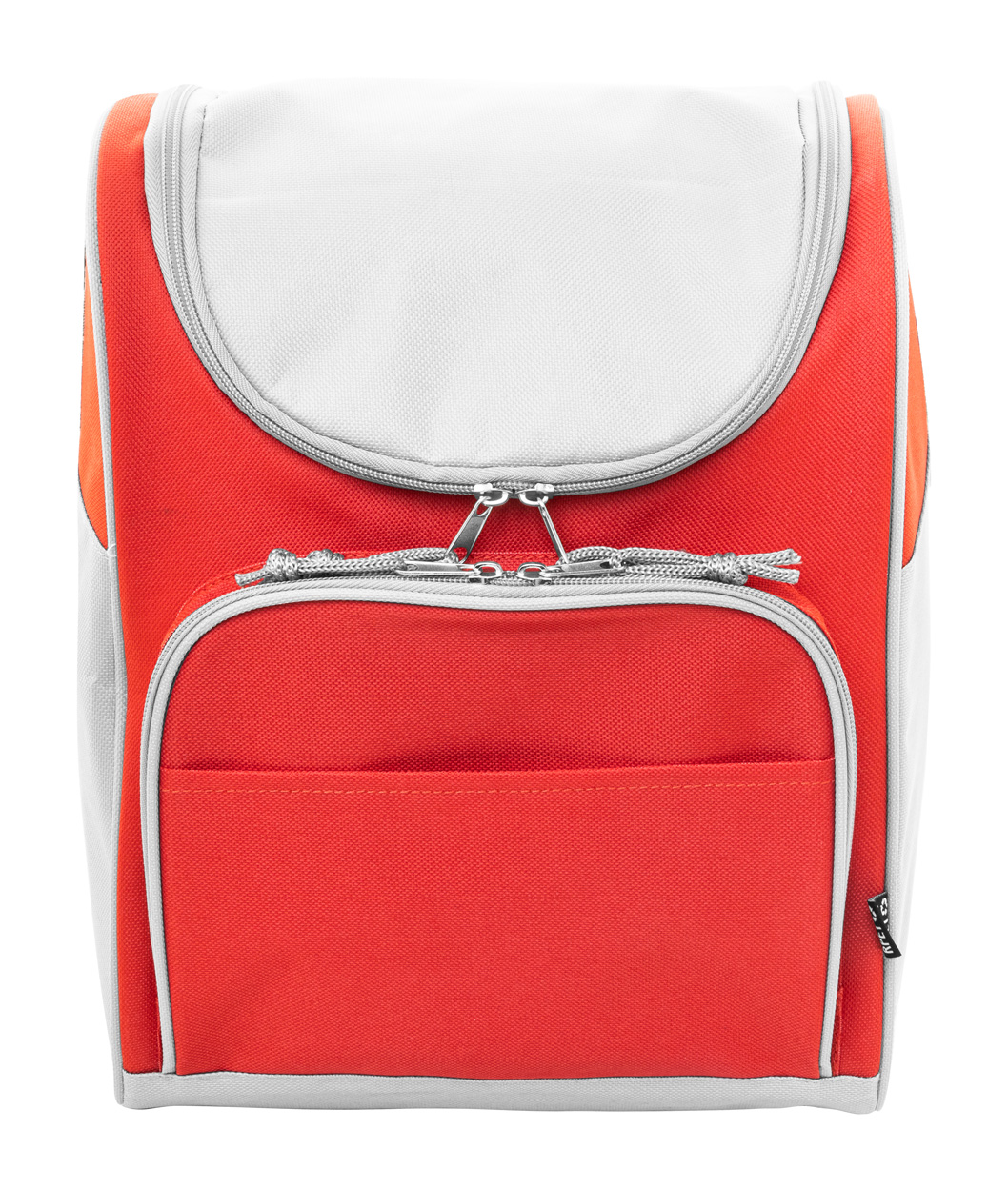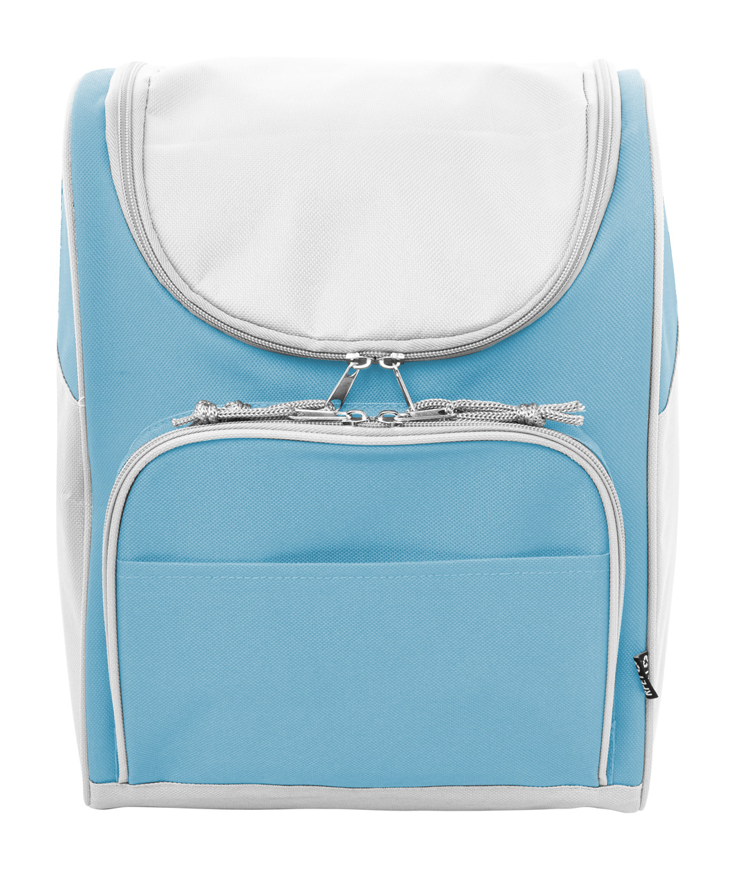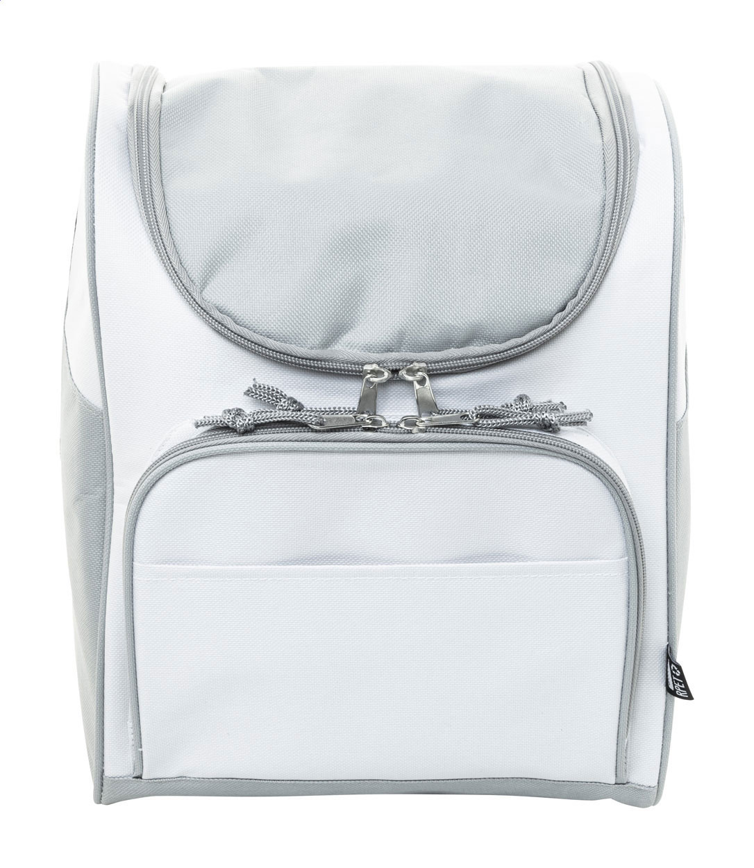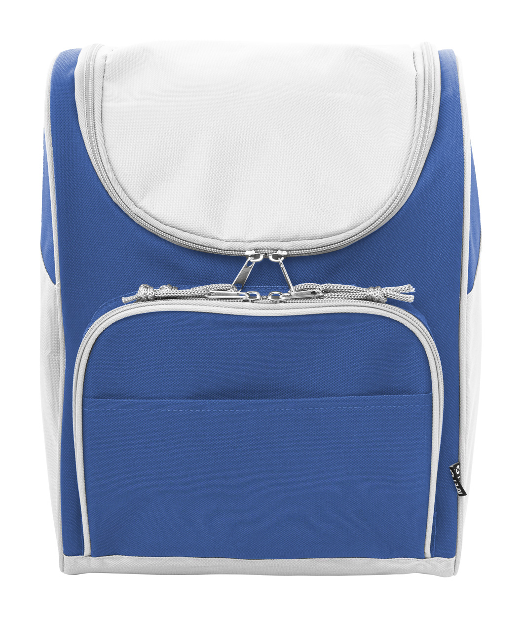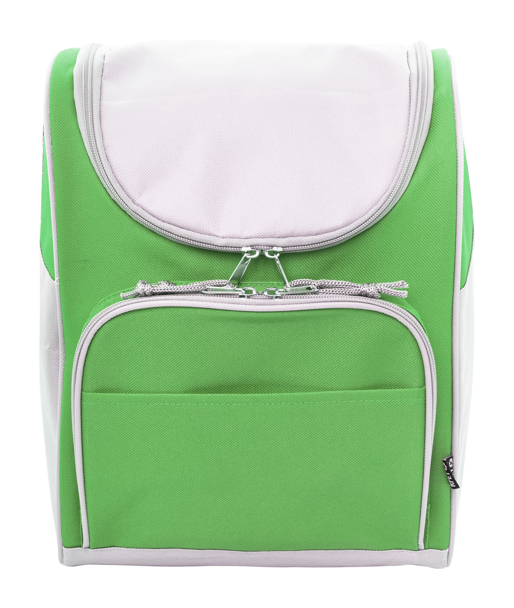 Borsa termica in poliestere 600D RPET con imbottitura in alluminio, 2 scomparti chiusi da cerniera, piccola tasca frontale, tracolla regolabile ed etichetta RPET.