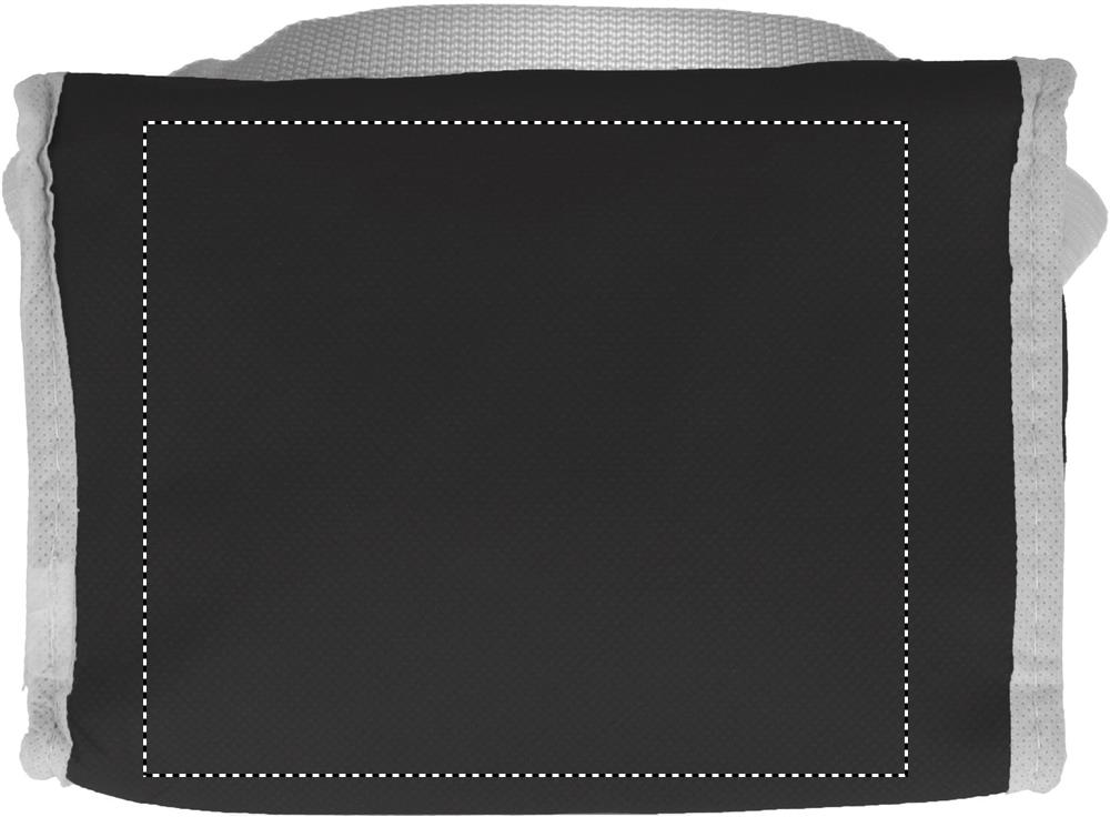 Borsa frigo per 6 lattine. Interno in alluminio ed esterno in tessuto non tessuto 80gr/m². Materiale isolante: Schiuma laminata con foglio di alluminio. Capacità 3L.