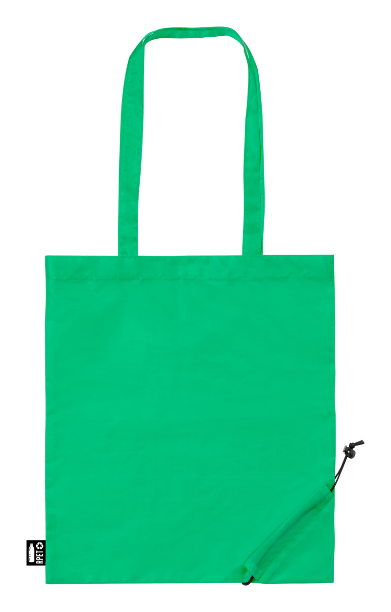 Borsa in poliestere RPET 190T ripiegabile con manici lunghi ed etichetta RPET.