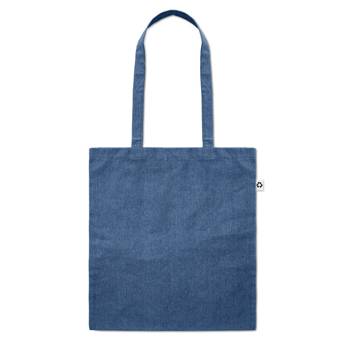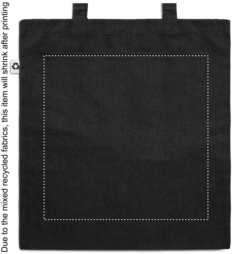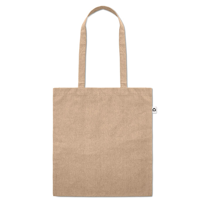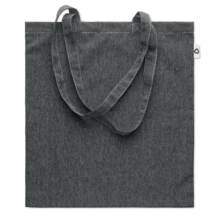 Shopper in cotone riciclato a 2 toni e poliestere riciclato con manici lunghi (20%/80%). Circa 140 gr/m². Questo articolo può restringersi dopo la stampa.