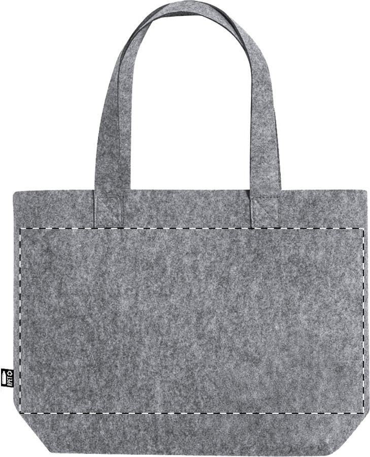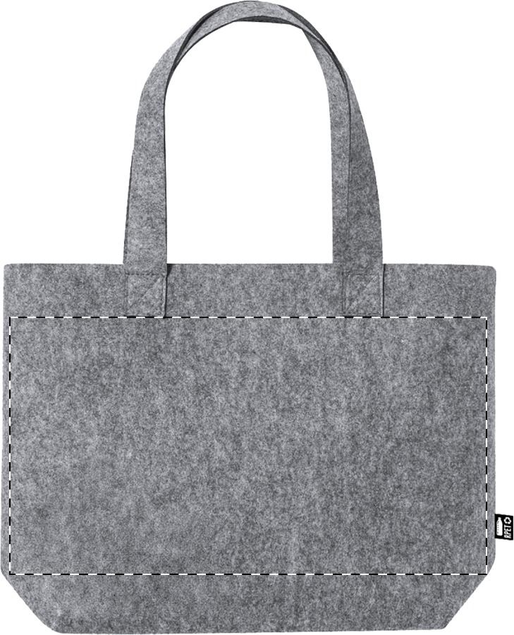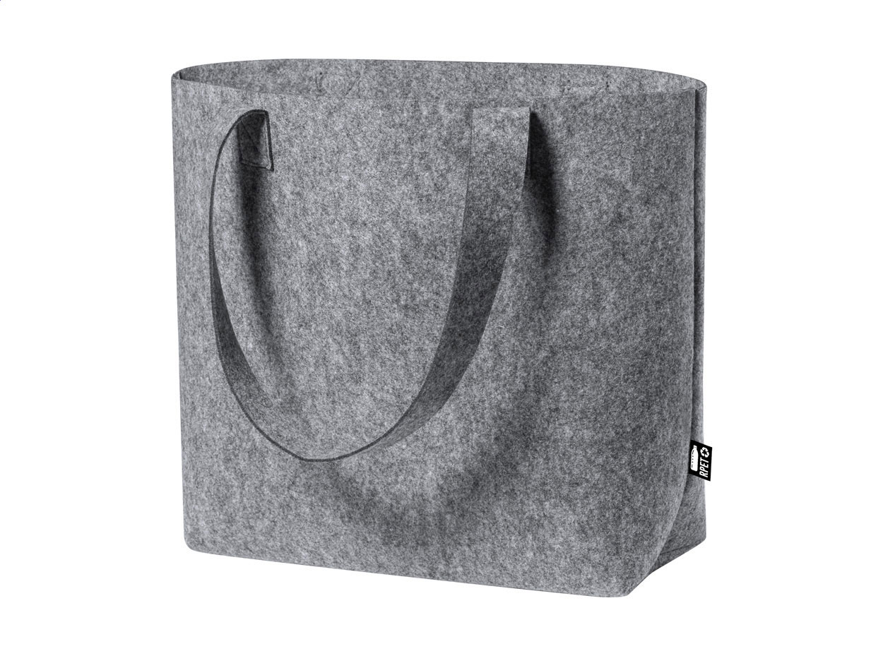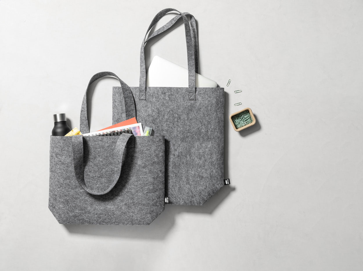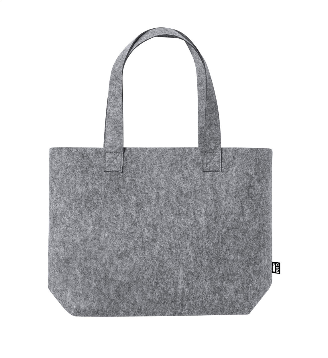 Borsa in feltro RPET con manici lunghi, soffietto sul fondo ed etichetta RPET.