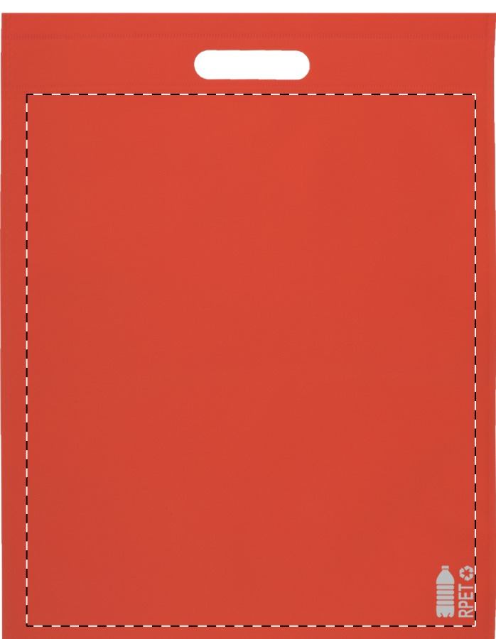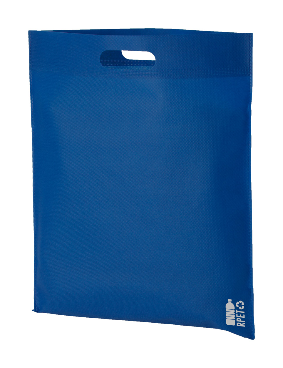 Borsa in tessuto non tessuto RPET 70 g/m². con manici fustellati ed etichetta RPET.