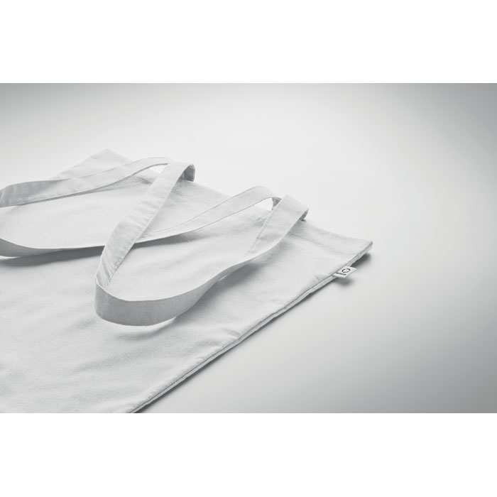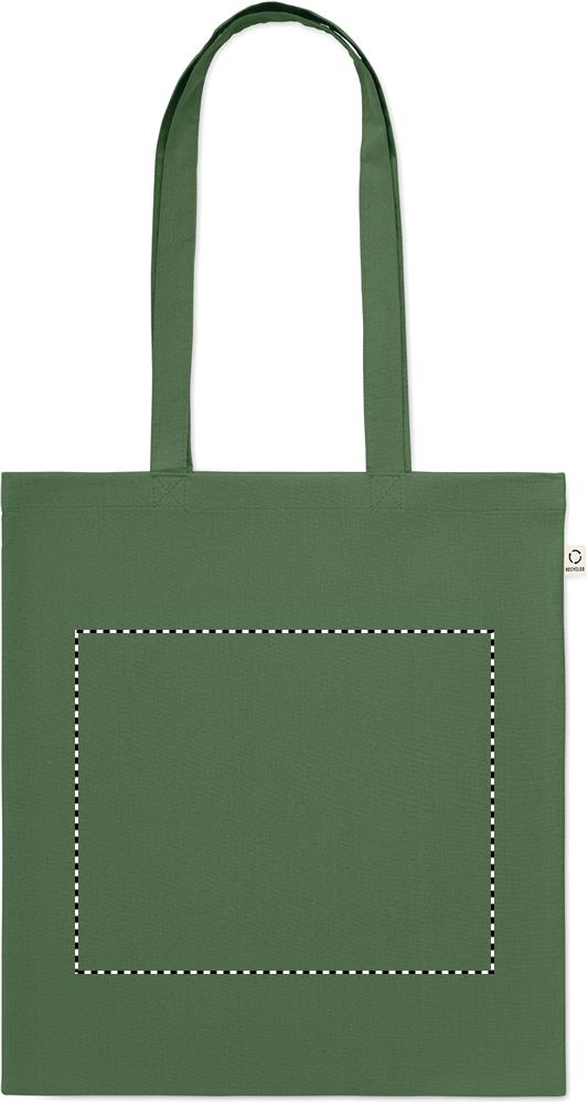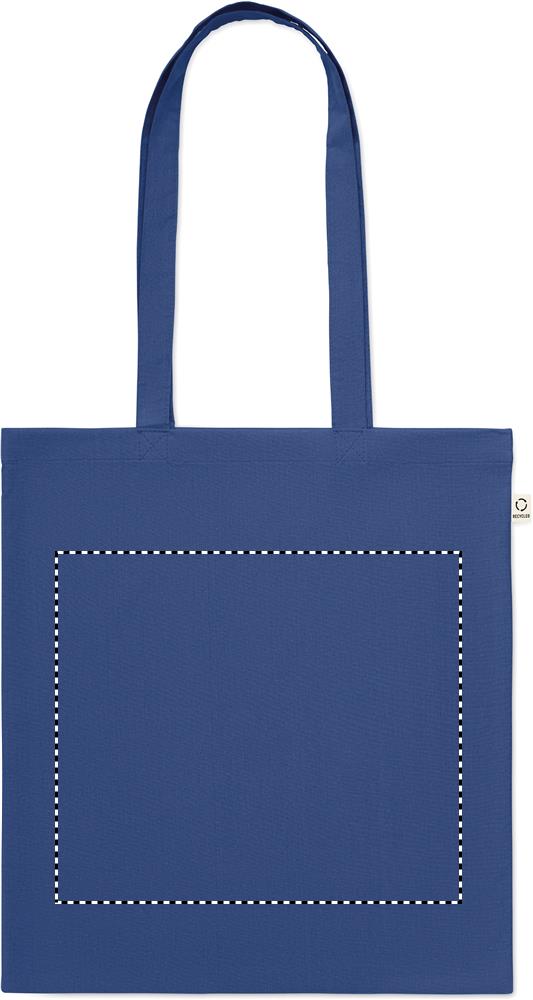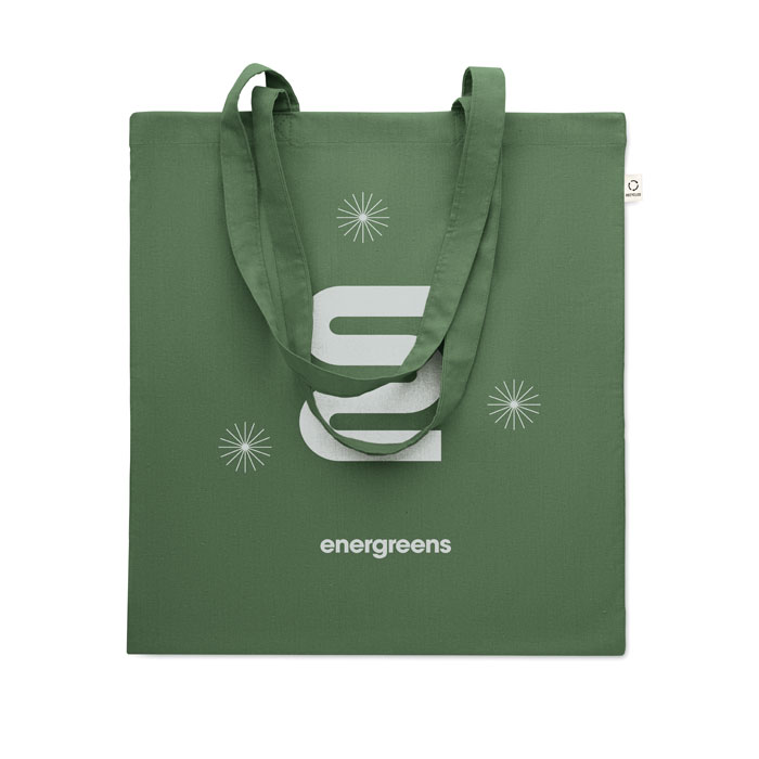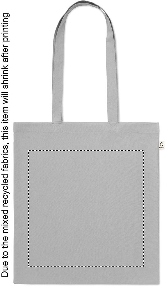 Questa shopping bag in cotone riciclato post-consumo si compone del 70% di cotone riciclato e del 30% di RPET, con manici lunghi. 140 gr/m². Questo articolo può restringersi leggermente dopo la stampa per il tipo di materiale con cui è stata realizzata. Personalizzabile con stampa a colori sia sul fronte che sul retro. Carica o inviaci il tuo logo, e riceverai un'anteprima di stampa gratuita, non vincolante ai fini dell'acquisto.