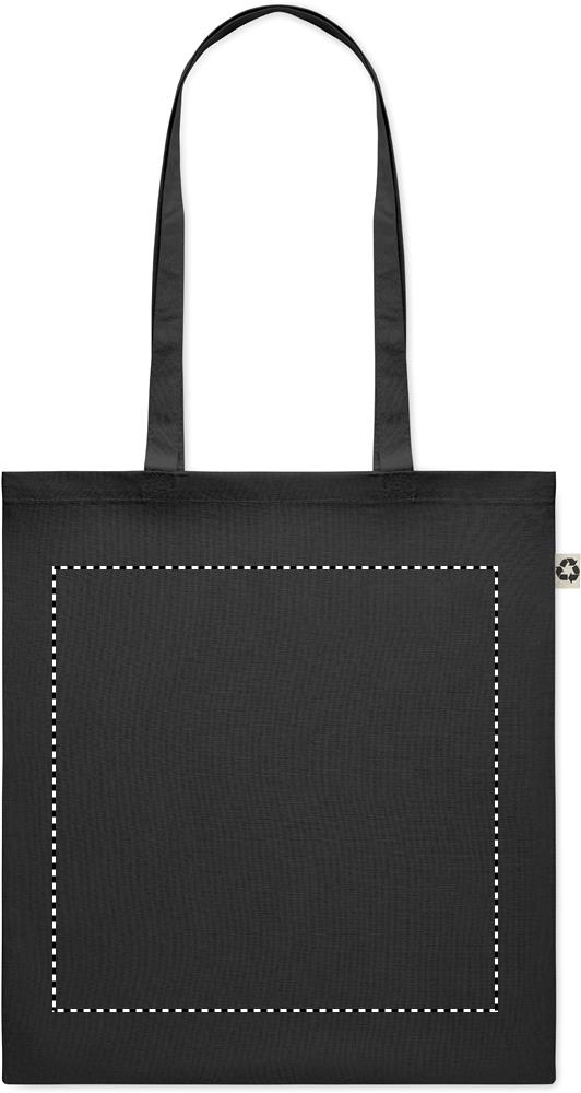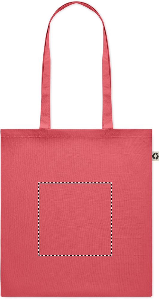 Shopper realizzata in cotone riciclato, composto al 65% di cotone riciclato e al 35% di cotone normale, con manici lunghi. 140 gr/m². Adatta a qualsiasi evento e riutilizzabile per l'uso quotidiano. Può essere personalizzata con la stampa a colori sia sul fronte che sul retro della borsa. Carica o inviaci il tuo logo e riceverai una bozza grafica gratuita non vincolante ai fini dell'ordine. Consegna express in 3-4 gg lavorativi fino a 200 pz, inclusa nel prezzo.