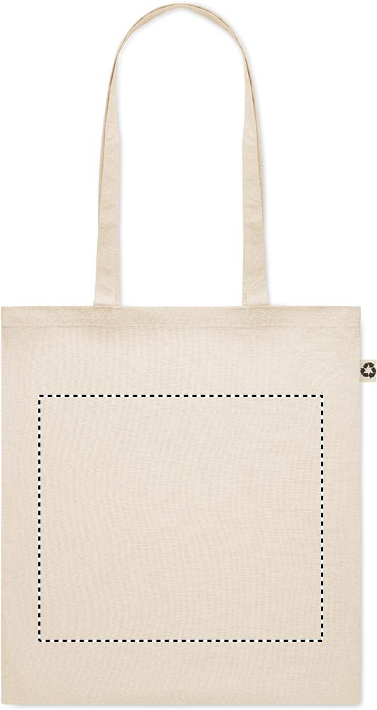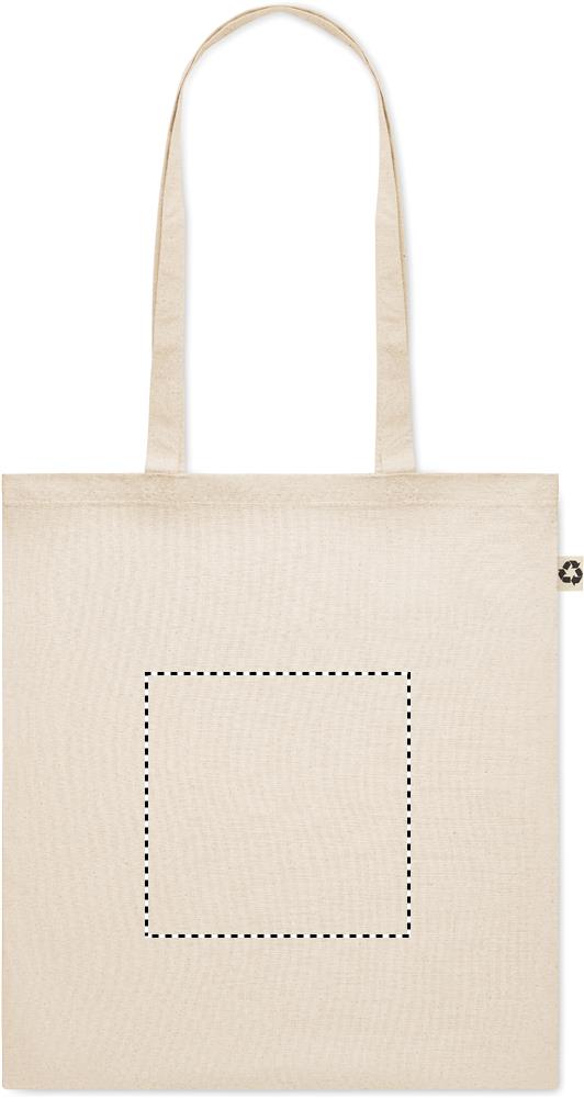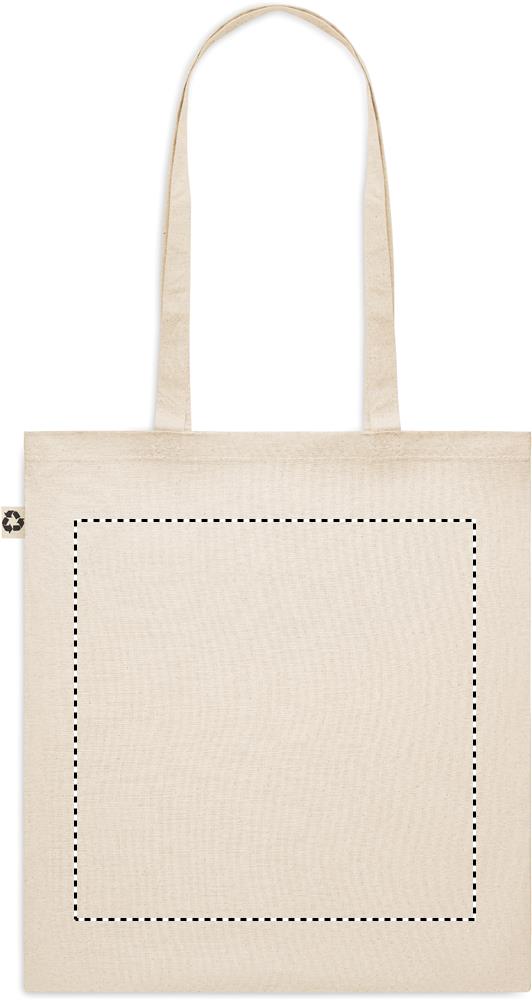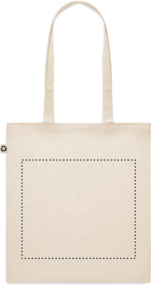 Shopper realizzata in cotone riciclato, composto al 65% di cotone riciclato e al 35% di cotone normale, con manici lunghi. 140 gr/m². Adatta a qualsiasi evento e riutilizzabile per l'uso quotidiano. Può essere personalizzata con la stampa a colori sia sul fronte che sul retro della borsa. Carica o inviaci il tuo logo e riceverai una bozza grafica gratuita non vincolante ai fini dell'ordine. Consegna express in 3-4 gg lavorativi fino a 200 pz, inclusa nel prezzo.