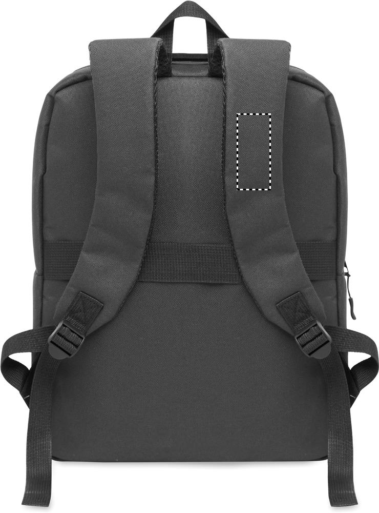 Zaino sottile per laptop da 15'' in poliestere 6300D RPET e fodera 210D. Scomparto imbottito. Tasca esterna con cerniera per tablet da 10'' e frontale con cerniera. Varie tasche interne. Schienale e spallacci imbottiti. Custodia per valigia.
