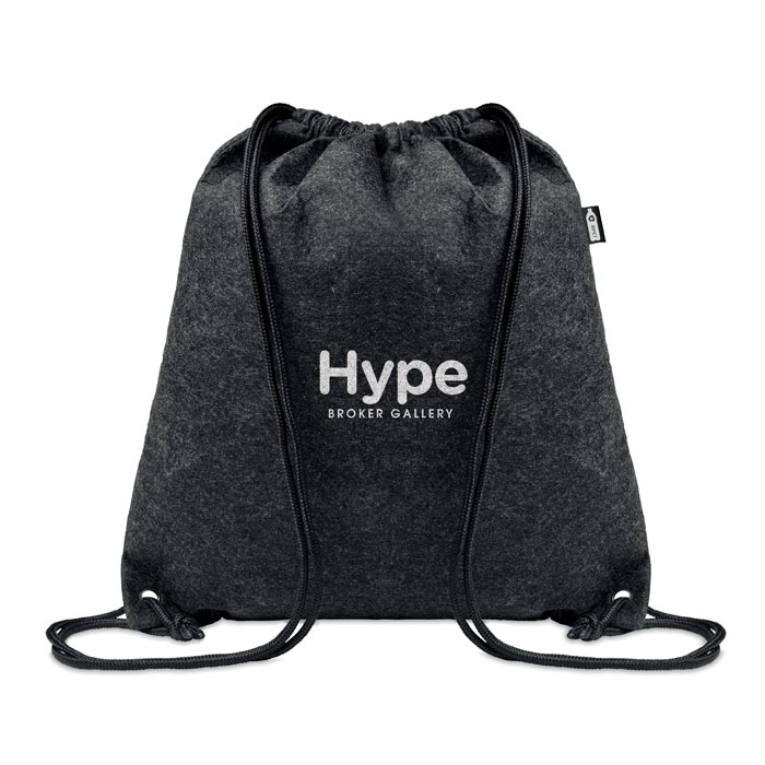 Sacca in feltro RPET con cordini in poliestere. Questa borsa in feltro è ideale per l'uso quotidiano, per la scuola, il lavoro o la palestra. È realizzata in plastica PET riciclata. Può essere personalizzata con la stampa a colori sia sul fronte che sul retro della borsa. Carica o inviaci il tuo logo e riceverai una bozza grafica gratuita non vincolante ai fini dell'ordine.