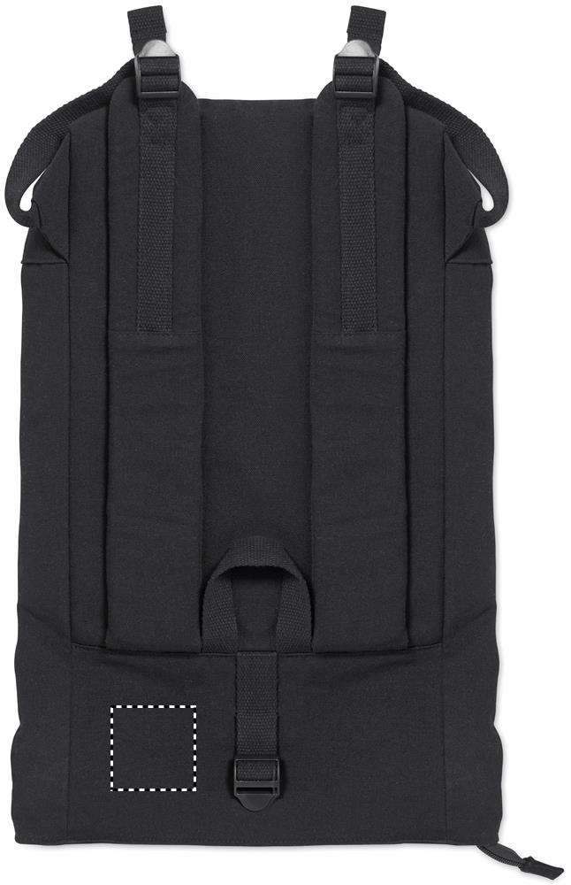 Zaino rolltop per laptop da 15 pollici con cerniera in cotone pre-consumo riciclato e poliestere riciclato (70%/30%). Tasca frontale con cerniera. Schienale e spallacci imbottiti. 340gr/m².
