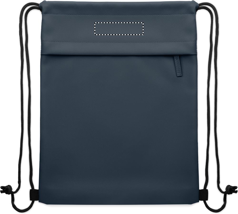 Borsa con coulisse con rivestimento in PU in poliestere 600D RPET e fodera in poliestere 190T RPET. Tasca frontale con cerniera.