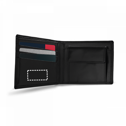 Portafoglio in pelle con blocco RFID, tasca per monete e banconote, capacità per 9 carte. Fornito in scatola regalo. 110 x 92 x 13 mm | Scatola: 130 x 109 x 24 mm