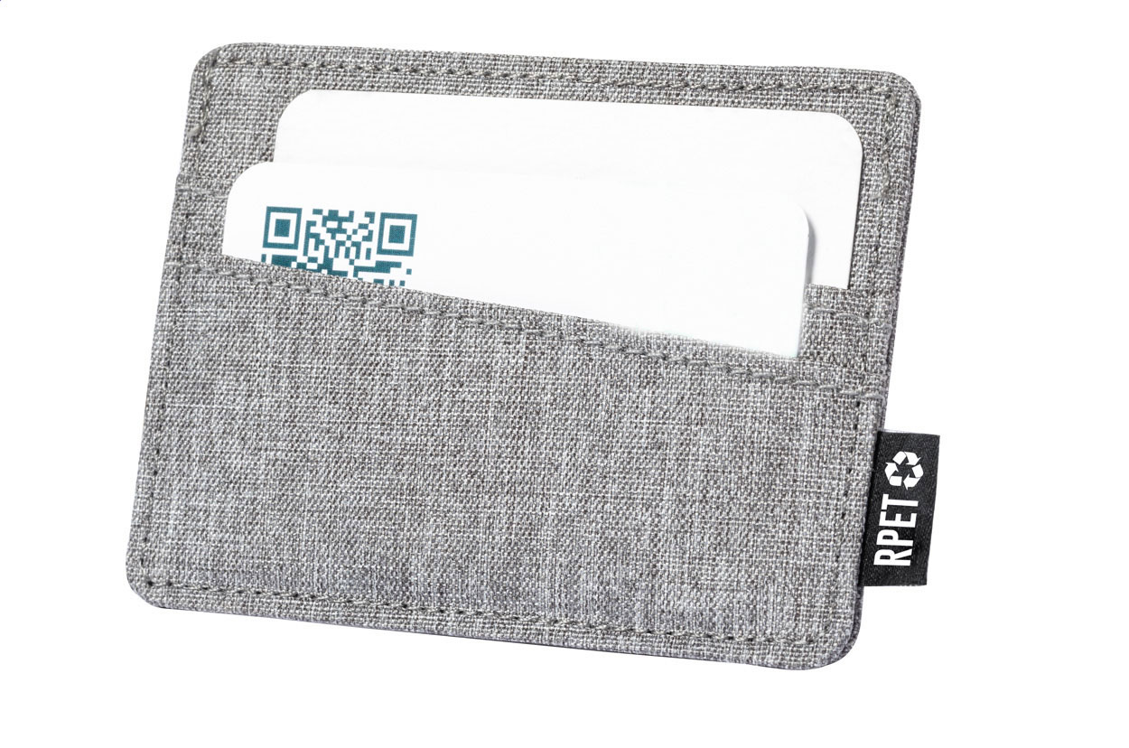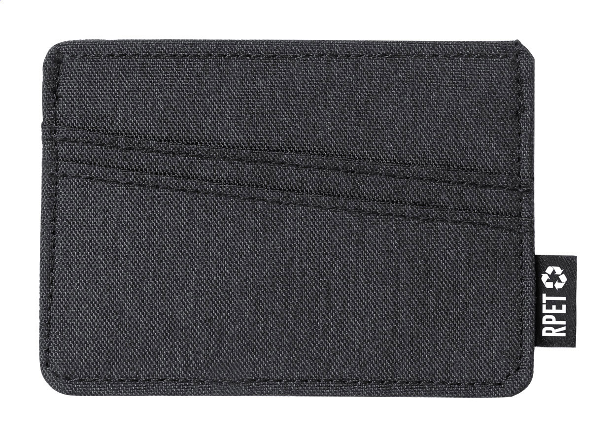 Porta carte di credito in poliestere RPET con 3 slot ed etichetta RPET.