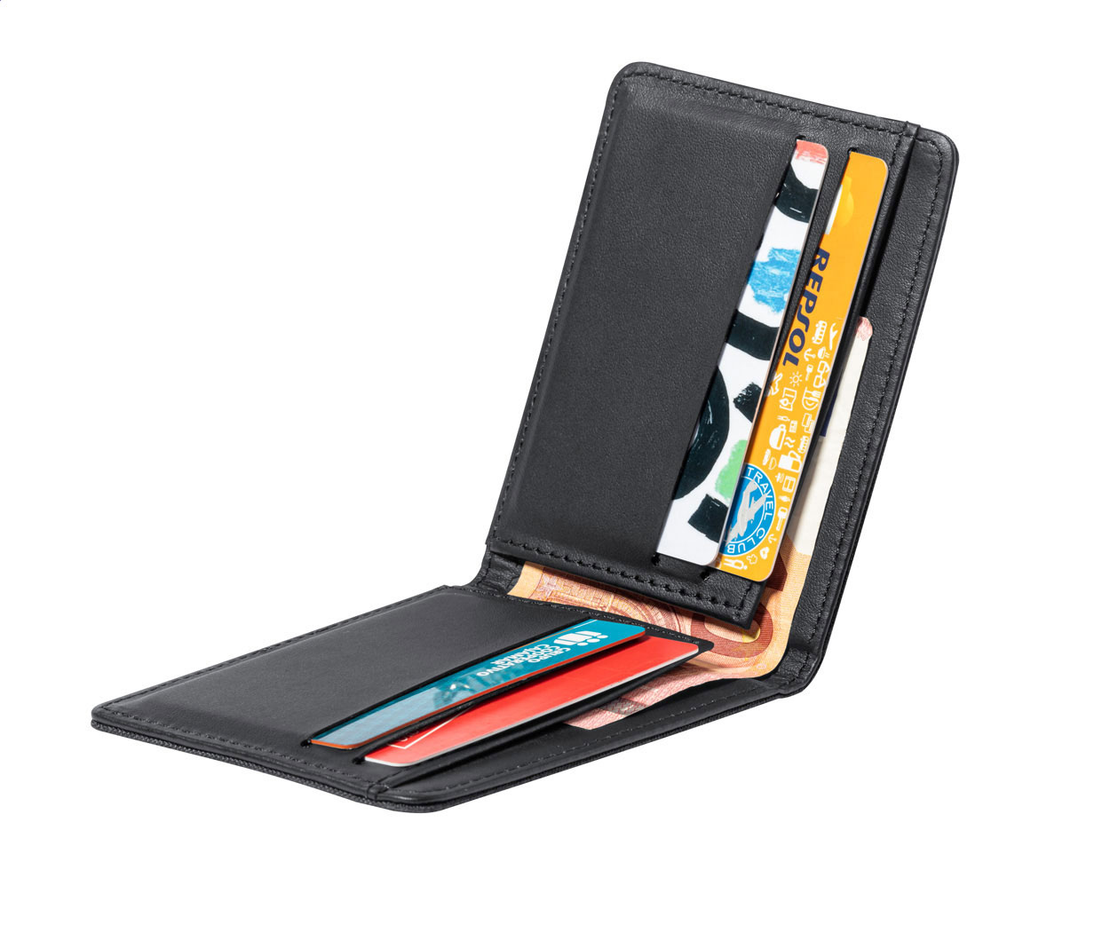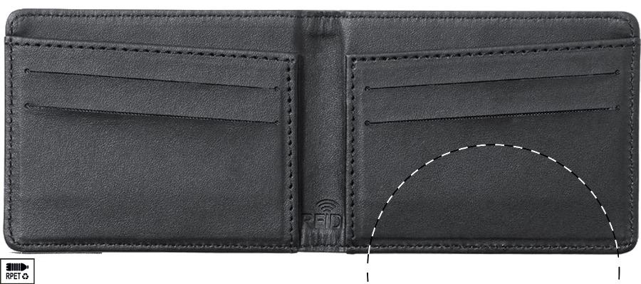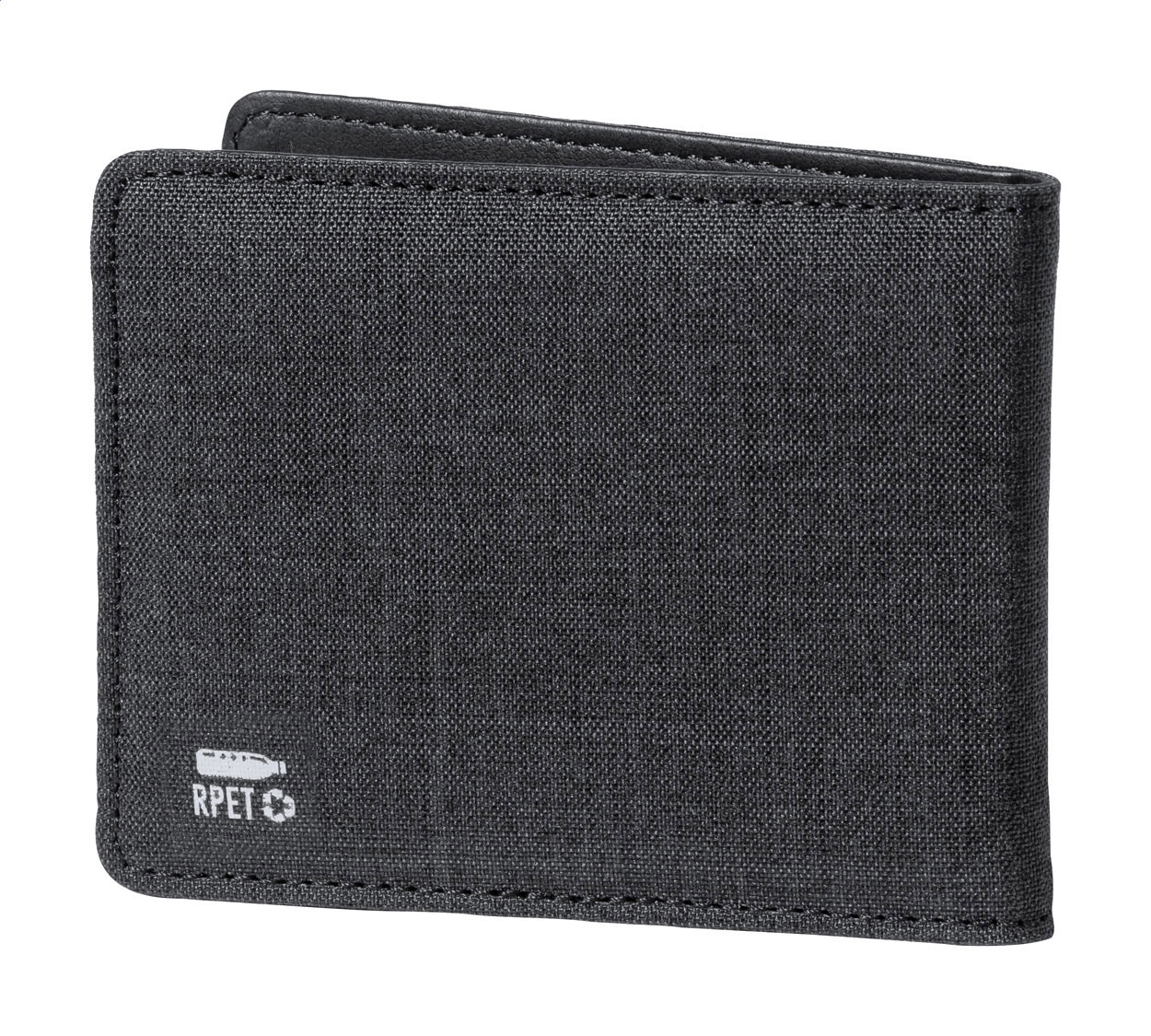 Portafoglio in poliestere RPET con protezione RFID e 6 scomparti per carte di credito.