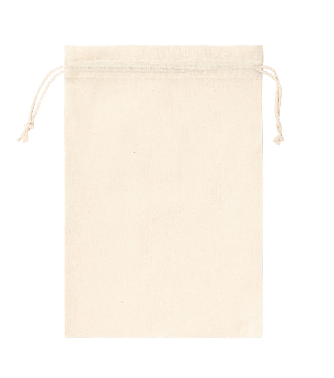 Sacca riutilizzabile in 100% cotone con chiusura a coulisse, peso 105 g/m².