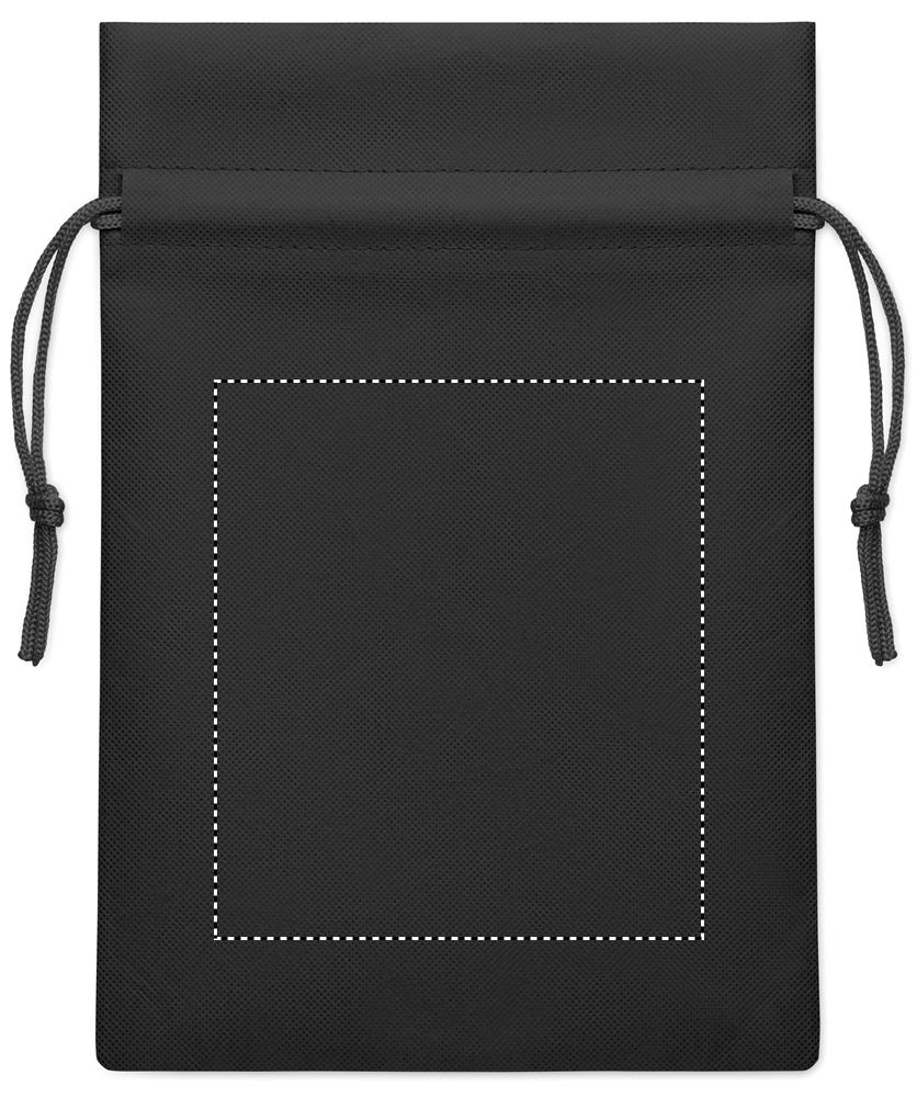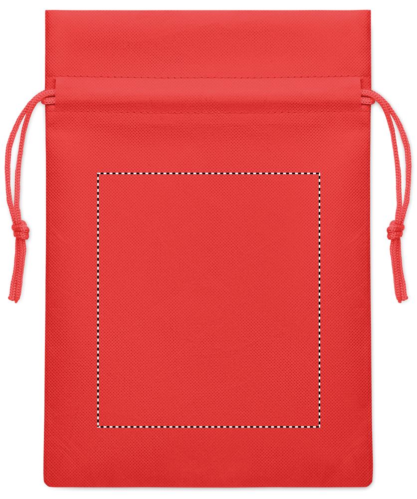 Piccola sacca regalo con cordoncino in tessuto non tessuto RPET 80 gr/m². Dimensioni circa 20x30 cm.