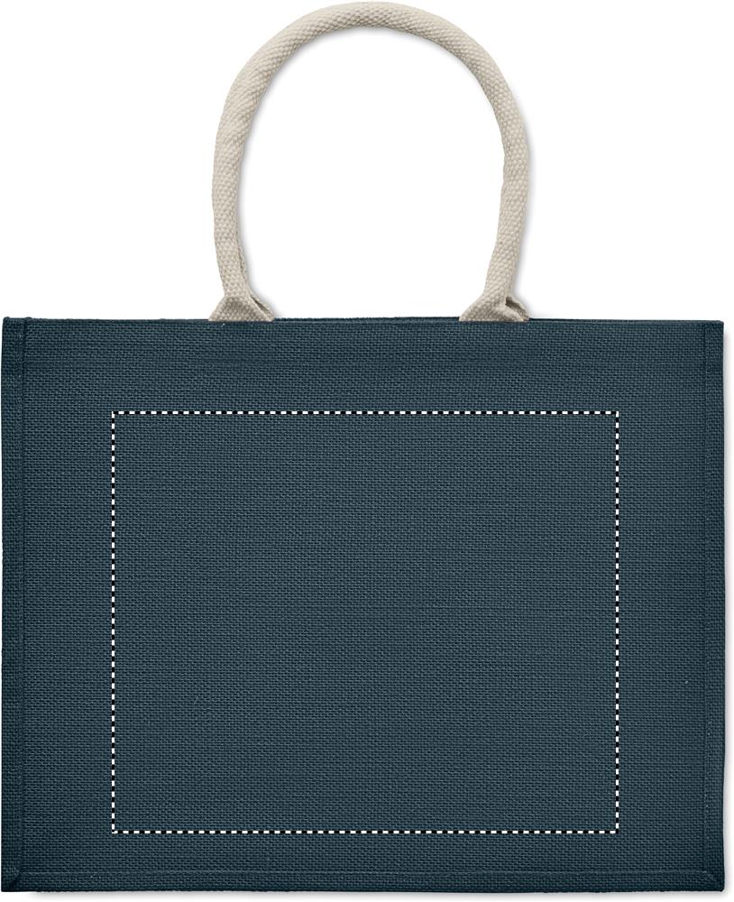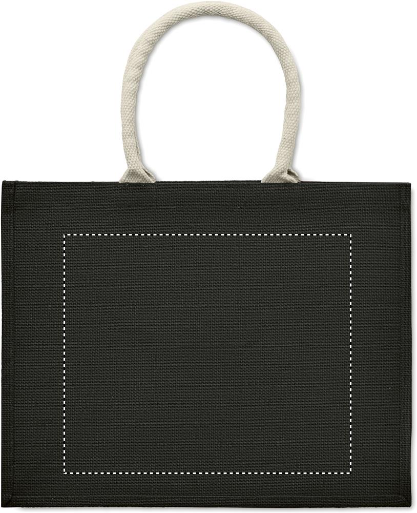 Questa borsa è realizzata in iuta laminata con manico in cotone, certificato OEKO-TEX® STANDARD 100. Ha i manici corti. Può essere utilizzata anche come borsa mare. Personalizzabile con stampa a colori o con un solo colore di stampa, sia sul fronte che sul retro della borsa. Carica o inviaci il tuo logo e riceverai una bozza grafica gratuita non vincolante ai fini dell'acquisto.