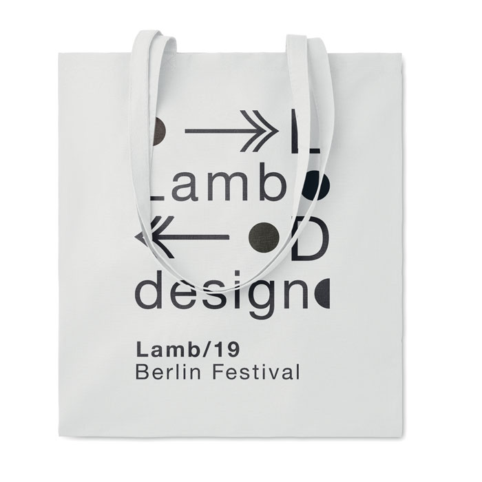 Shopper in cotone da 180gr. Manici lunghi. Questo prodotto è certificato OEKO-TEX® STANDARD 100. Può essere personalizzata con la stampa a colori sia sul fronte che sul retro della borsa. Carica o inviaci il tuo logo e riceverai una bozza grafica gratuita non vincolante ai fini dell'ordine. Consegna express in 3-4 gg lavorativi inclusa nel prezzo fino a 200 pz