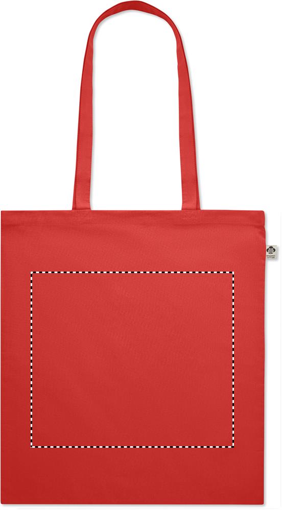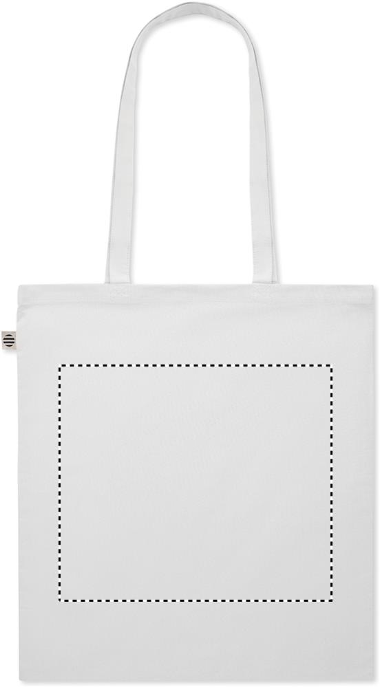 Shopper in cotone biologico con manici lunghi. 180 gr/m², certificato OEKO-TEX® STANDARD 100. Prodotta secondo uno standard certificato per l'uso di sostanze nocive nel settore tessile. Può essere personalizzata con la stampa a colori sia sul fronte che sul retro della borsa. Carica o inviaci il tuo logo e riceverai una bozza grafica gratuita non vincolante ai fini dell'ordine. Consegna express, inclusa nel prezzo, in 3-4 gg lavorativi fino a 200 pz.