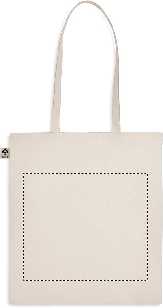 Shopper in cotone organico con manici lunghi. 105 gr / m². Questo prodotto è certificato OEKO-TEX® STANDARD 100. Può essere personalizzata con la stampa a colori sia sul fronte che sul retro della borsa. Carica o inviaci il tuo logo e riceverai una bozza grafica gratuita non vincolante ai fini dell'ordine. Consegna express in 3-4 gg lavorativi inclusa nel prezzo fino a 250 pz.