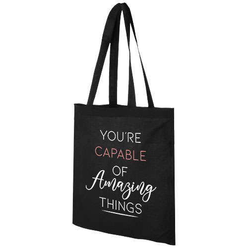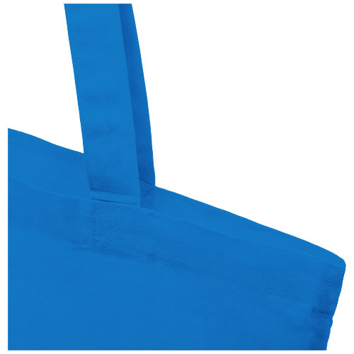 La borsa Madras è la borsa perfetta da regalare durante un evento, una conferenza o da usare come borsa per la spesa. La densità del cotone di 140 g/m² rende la borsa robusta, duratura e adatta a trasportare oggetti pesanti nello scomparto principale. Grazie ai manici a spalla lunghi 30 cm, questa borsa tote è facile da portare in giro. Realizzata in India e certificata OEKO-Tex. Resistenza fino a 5 kg di peso.