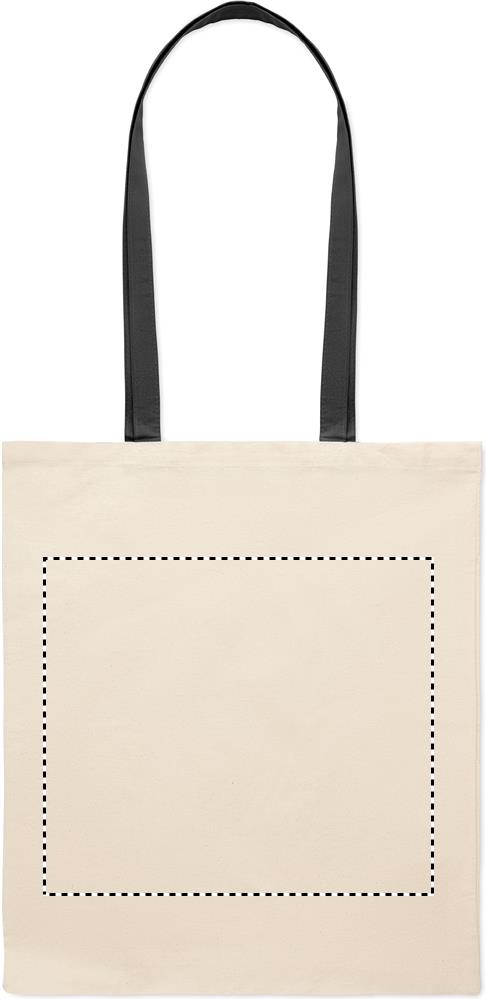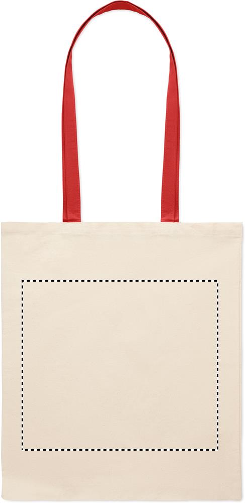 Shopper in cotone con manici lunghi colorati. 140 gr/m². Adatta all'uso quotidiano e per qualsiasi tipo di evento. Peso massimo trasportabile: 2.5kgs. Questo prodotto è certificato OEKO-TEX® STANDARD 100. Può essere personalizzata con stampa a colori, oppure con stampa ad un solo colore. Carica o inviaci il tuo logo e riceverai una bozza grafica gratis non vincolante ai fini dell'ordine. Consegna express in 3-4 gg lavorativi fino a 250 pz inclusa nel prezzo.