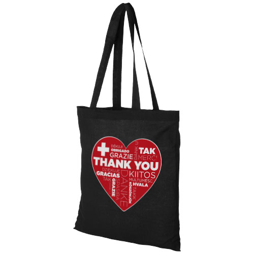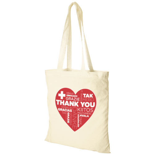 Borsa tote in cotone da 180 g/m² con ampio scomparto principale e la massima visibilità per qualsiasi logo. Il robusto materiale in cotone la rende adatta a trasportare anche gli oggetti più pesanti. I manici da 30 cm sono abbastanza lunghi da permettere di portare la borsa su una spalla. Portata massima 5 Kg.