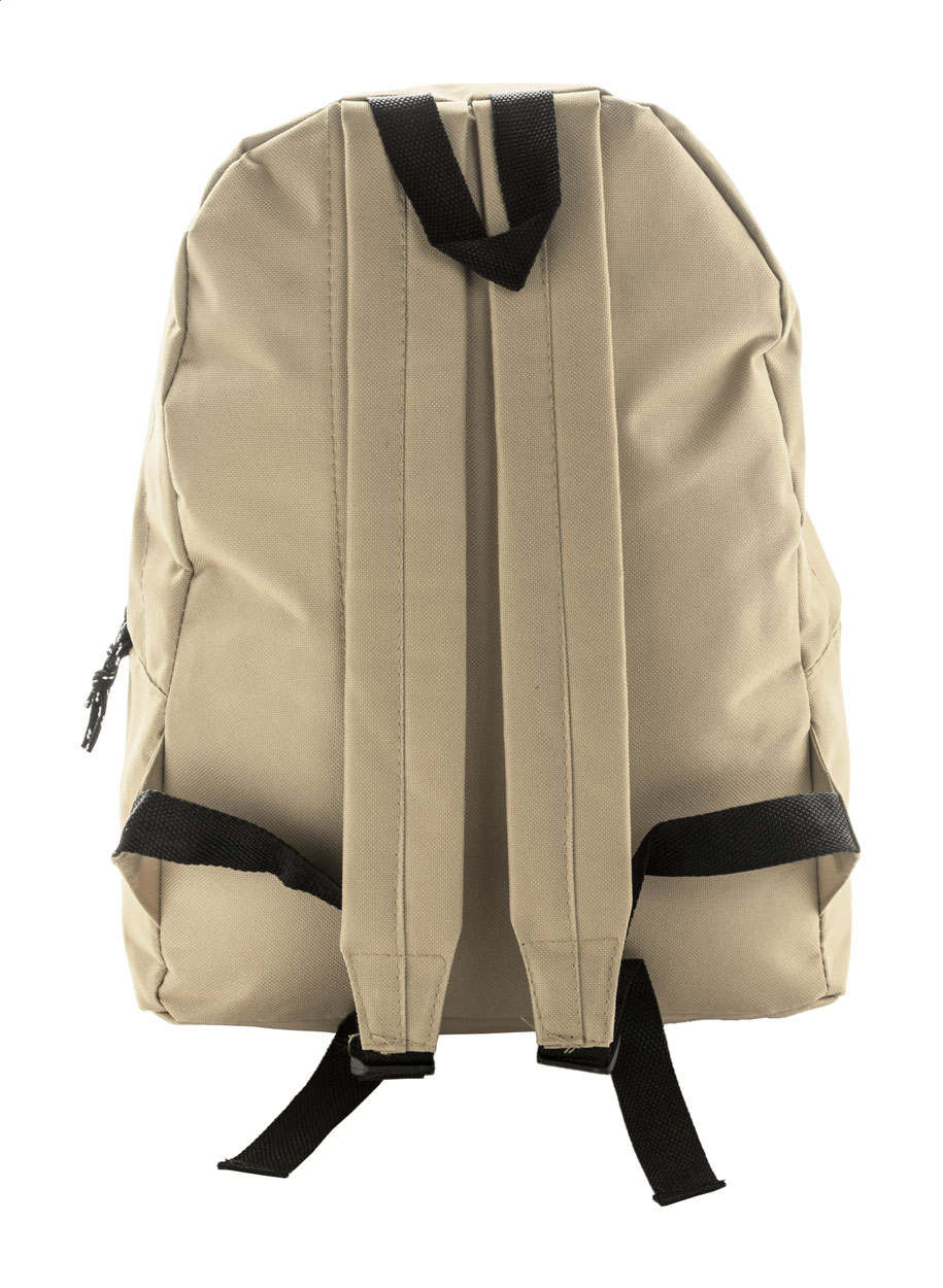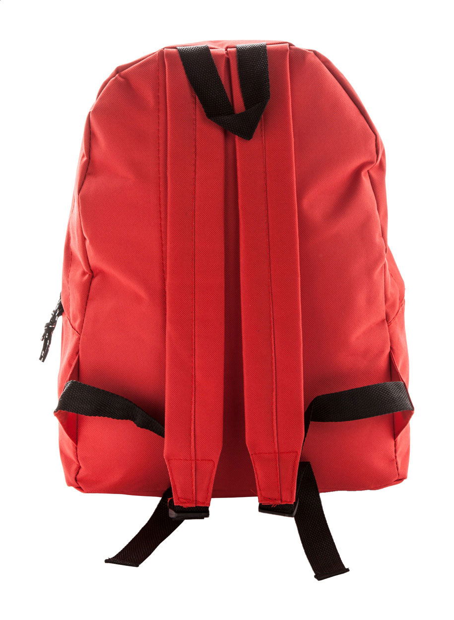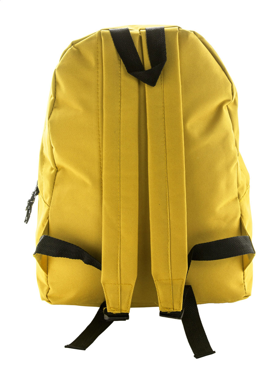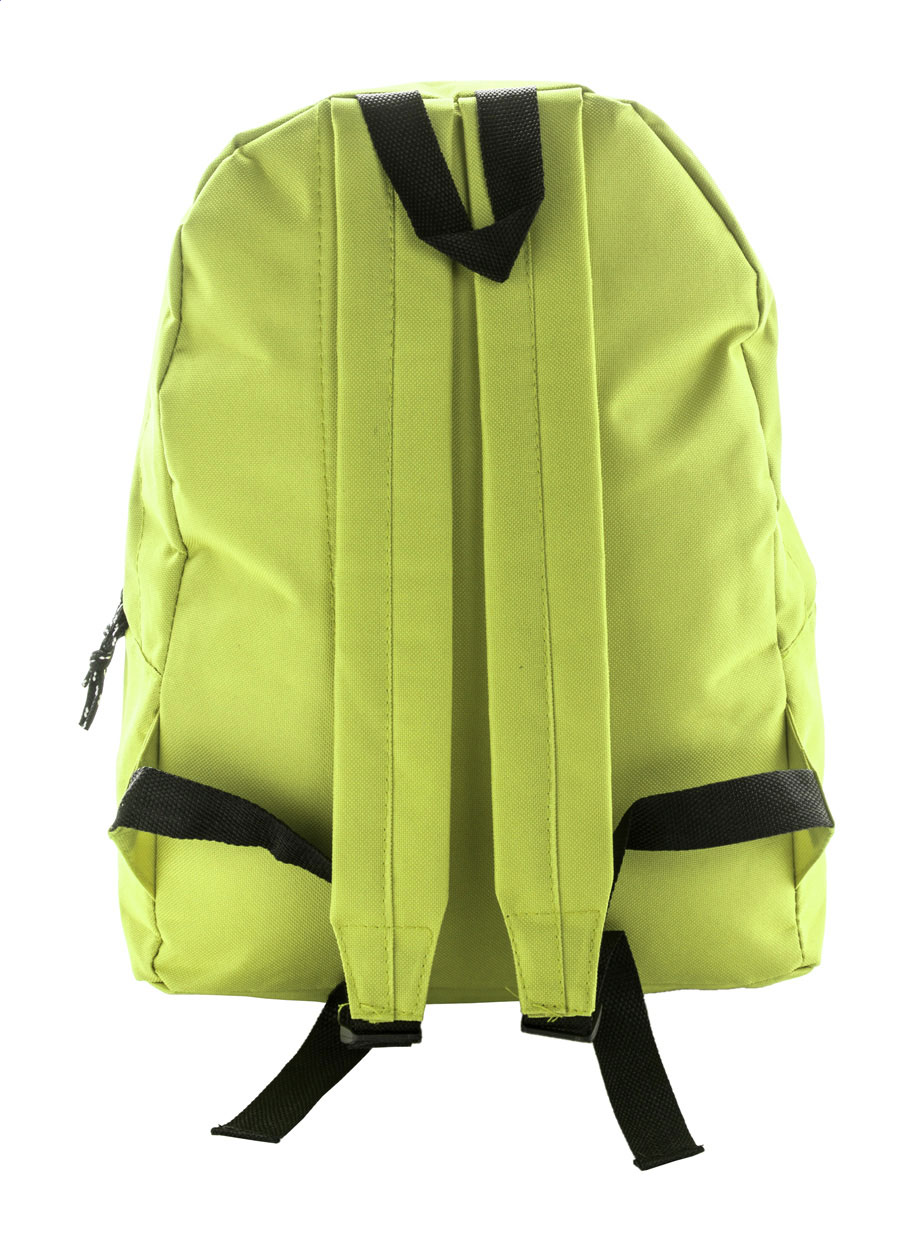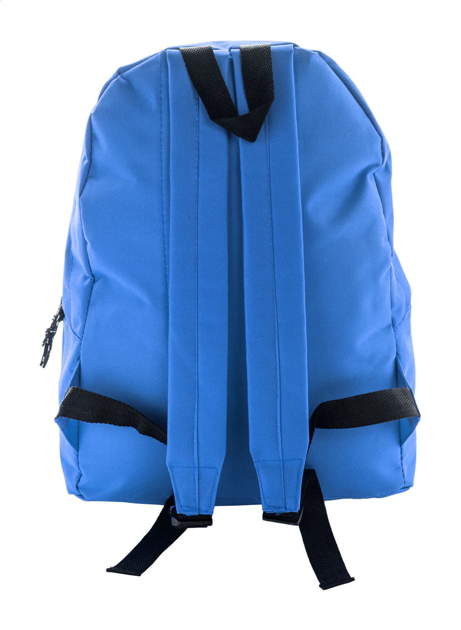 Zaino con tasca frontale e cerniera, schienale imbottito e spallacci. Poliestere 600D.