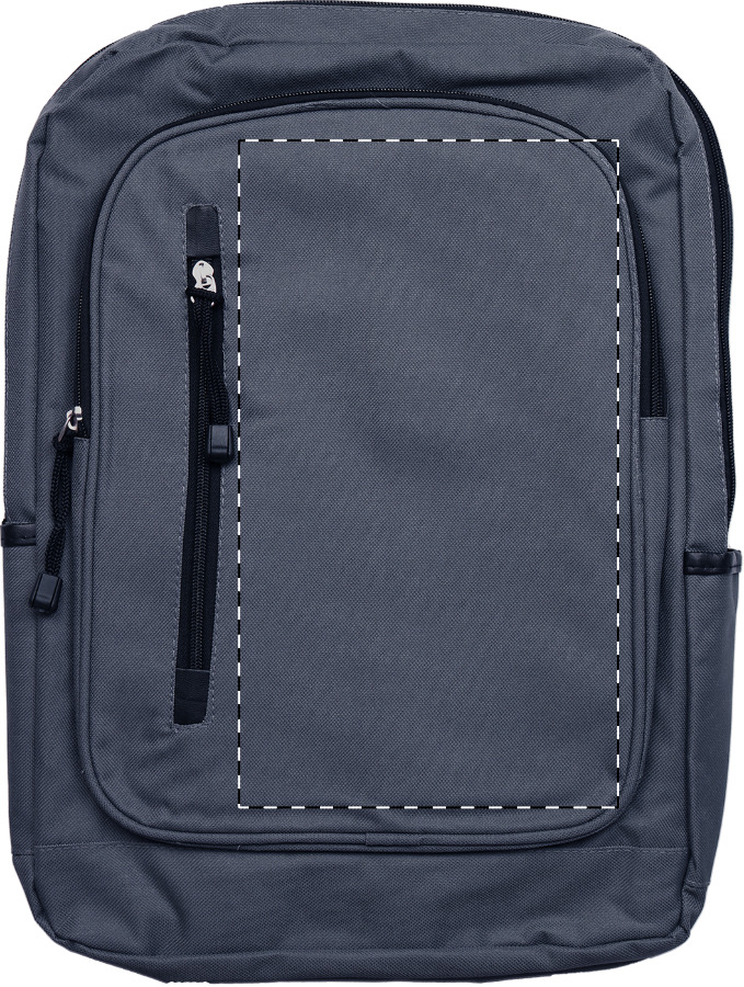 Zaino con scomparti multipli con zip, tasca imbottita per computer portatile (15") e cinghie regolabili. Poliestere 600D.