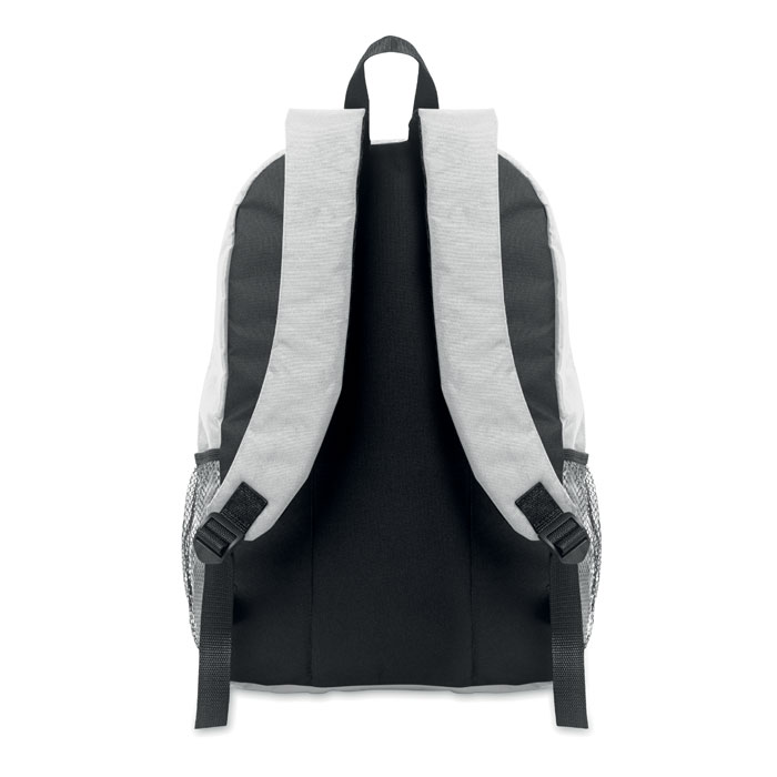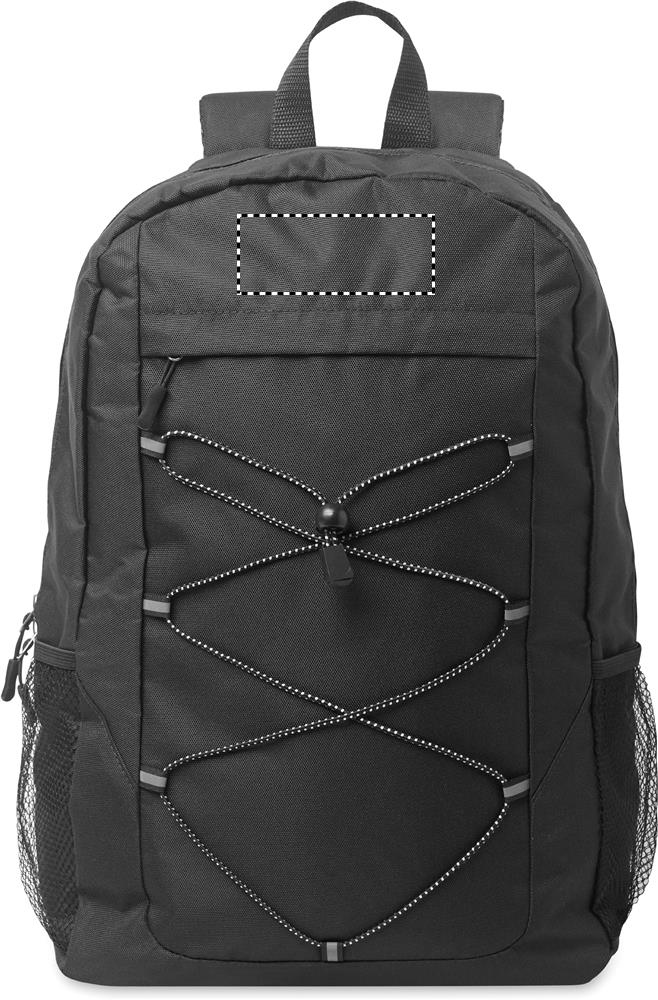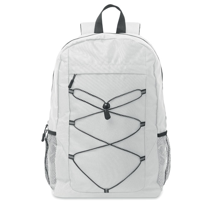 Zaino in poliestere 600D RPET con cordino decorativo e pannello frontale con cerniera. Tasche in rete su entrambi i lati, utili per il trasporto ad esempio della borraccia. Ideale per attività all'aria aperta o nel quotidiano. Personalizzabile con stampa a colori. Carica o inviaci il tuo logo e riceverai una bozza grafica gratuita, non vincolante ai fini dell'ordine.