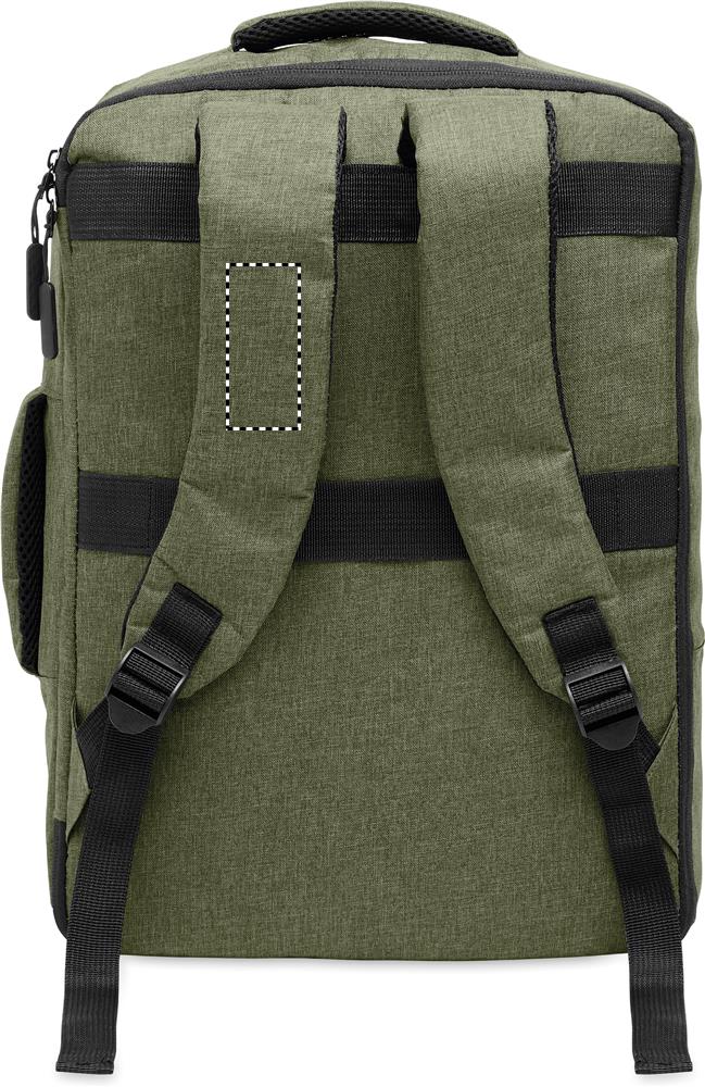 Zaino sottile per laptop da 15 pollici in 300D RPET con apertura a 180° e fodera in 210D RPET. Uno scomparto per laptop, 2 tasche interne, 2 tasche interne per penne. Maniglie, schienale e spallacci imbottiti. Custodia per valigia.