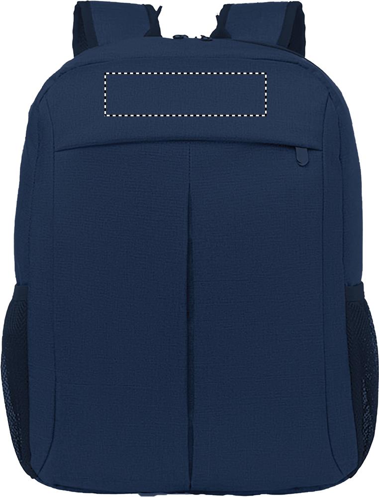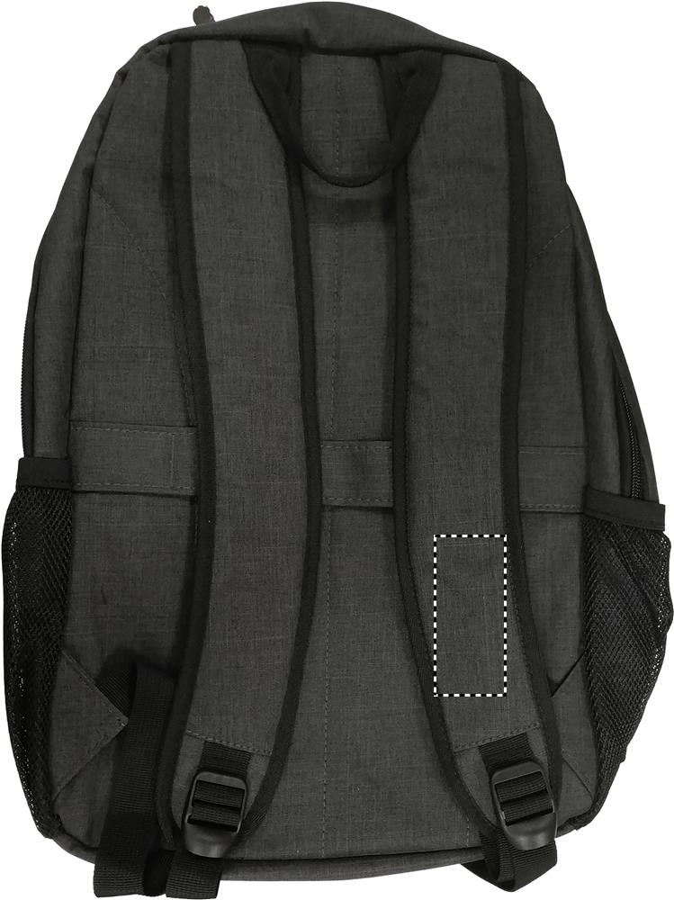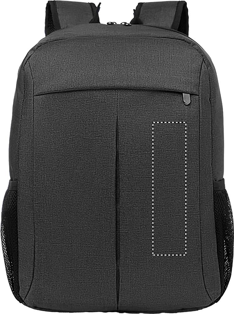 Zaino porta pc da 15 inch in poliestere 360D. Comparto interno per laptop e tasca frontale con zip. Schienale imbottito, tasche a rete laterali. Strap per trolley sul retro.