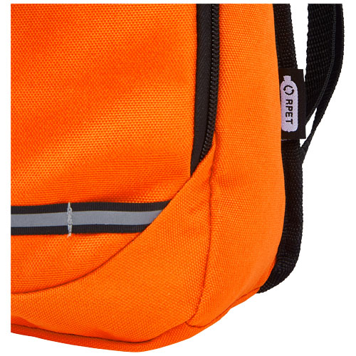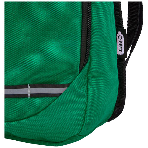 Realizzato in materiale riciclato certificato e tessuto idrorepellente al 100%, lo zaino Trails presenta una tasca anteriore con zip e uno scomparto principale con zip ed è compatibile con una sacca idrica. Grazie alle strisce catarifrangenti per una maggiore visibilità e al retro in rete per il massimo comfort, è un'ottima scelta sostenibile per le attività all'aperto.