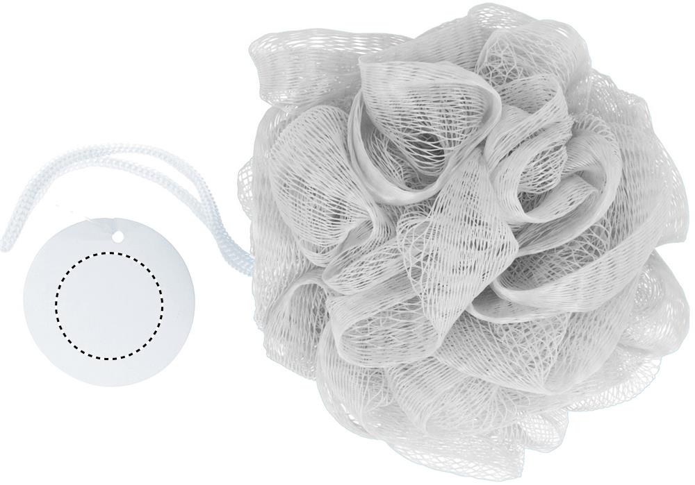 Spugna da doccia, con laccetto per appendere.