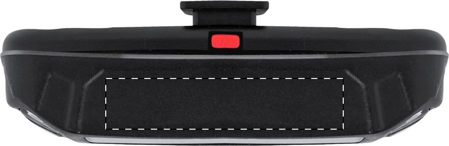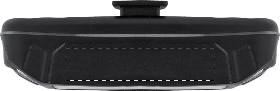 Luce da bicicletta in plastica ABS con proiettore COB ad alta potenza (luce bianca e rossa), batteria ricaricabile USB integrata (500 mAh) e cinghia elastica. Modalità di funzionamento a luce fissa e lampeggiante. Cavo di ricarica USB incluso.