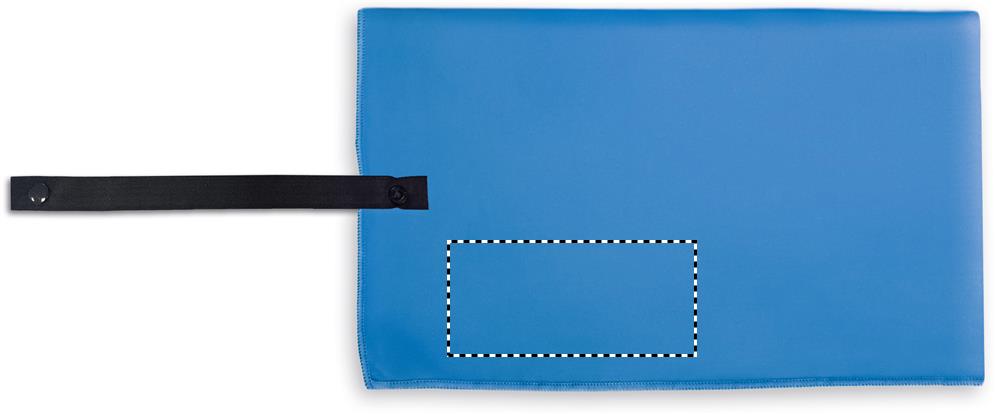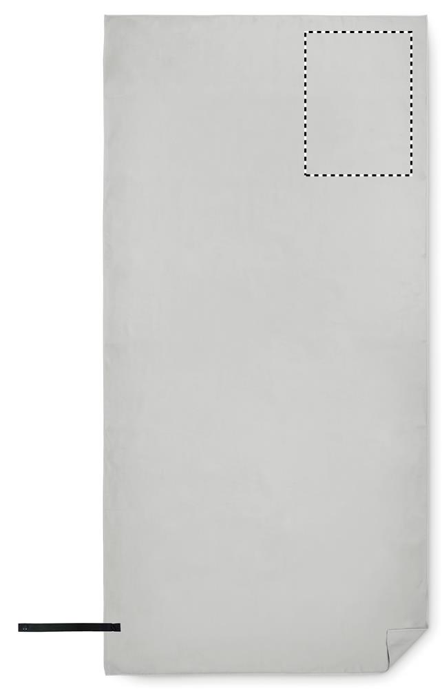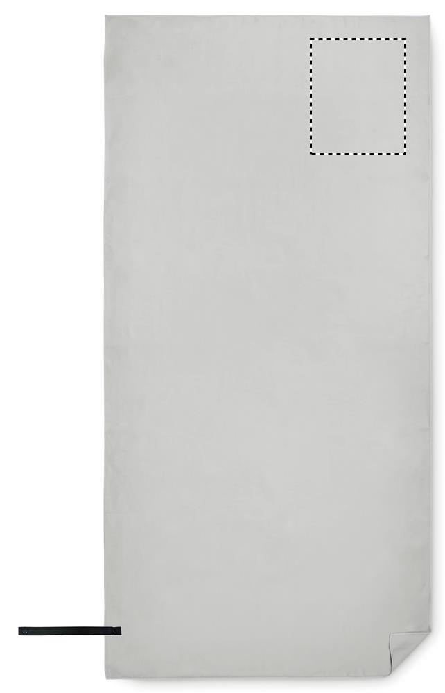 Asciugamano sportivo/spiaggia in microfibra vellutata double-face da 200 gr/m² con chiusura a bottone automatico.