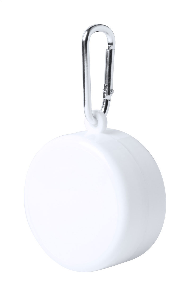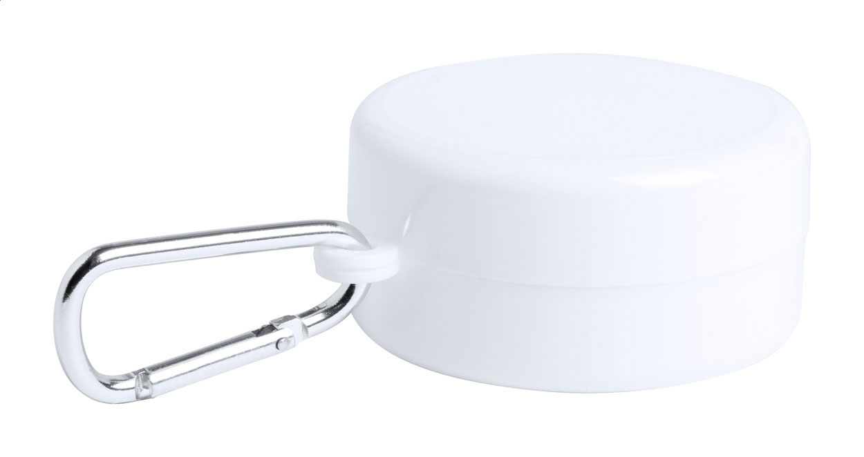 Bicchiere pieghevole in plastica con scomparto portapillole e moschettone in metallo, 220 ml.