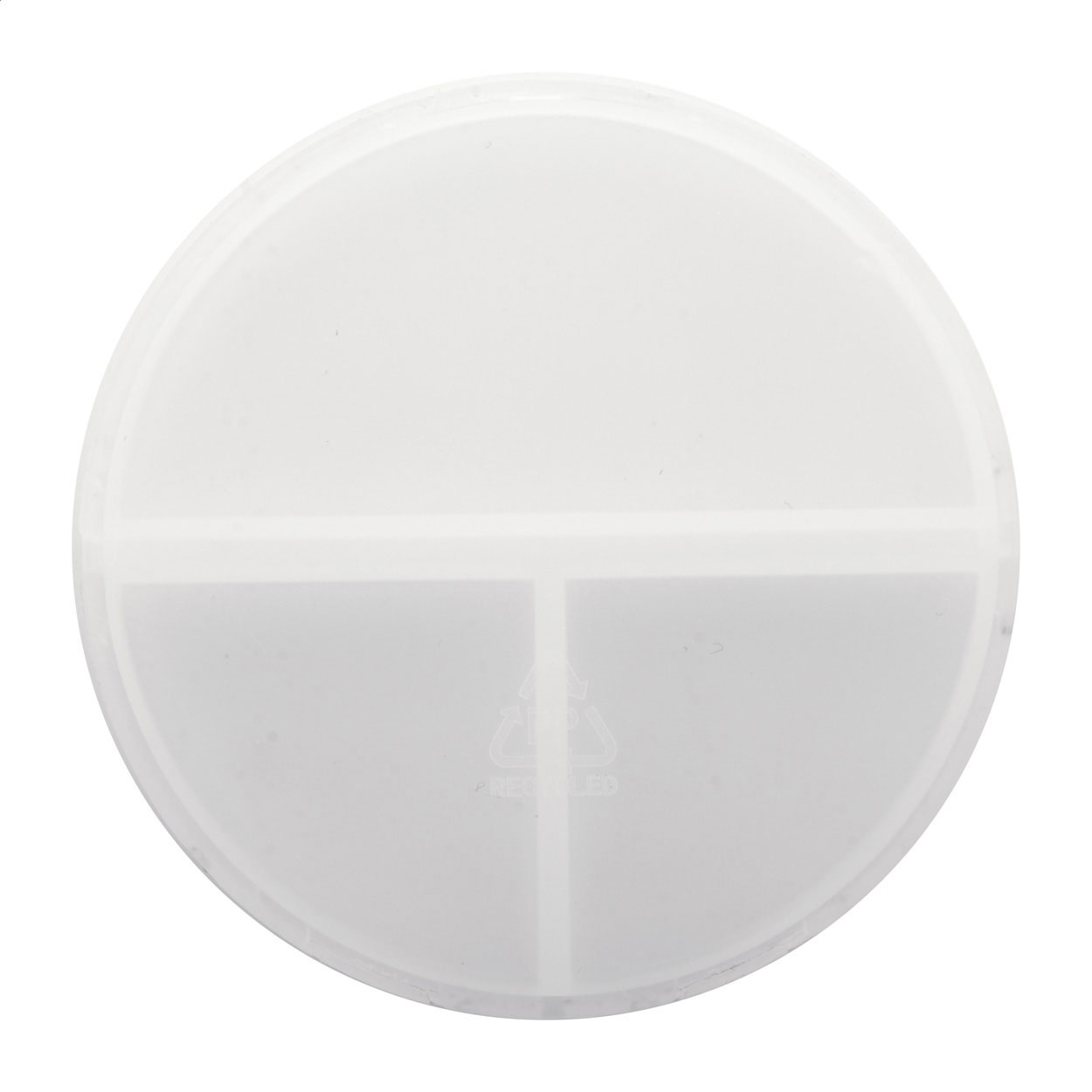 Portapillole in plastica PP riciclata con 3 scomparti.