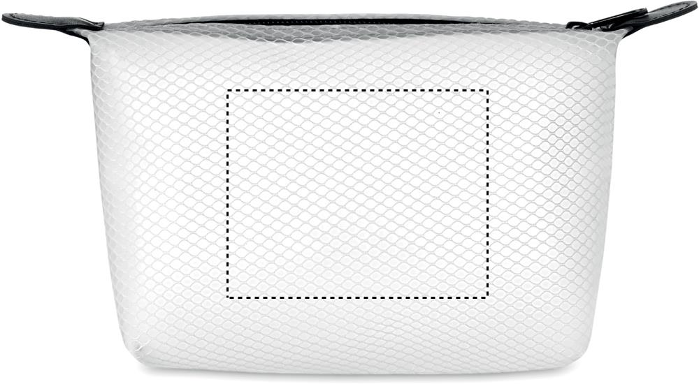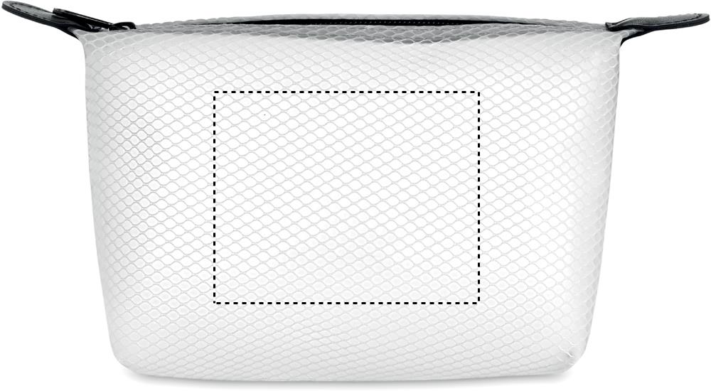 Portacosmetici in rete in EVA trasparente con zip nera.