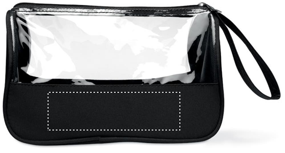 Porta cosmetici in microfibra con banda in PVC trasparente. 6 Phthalate free.