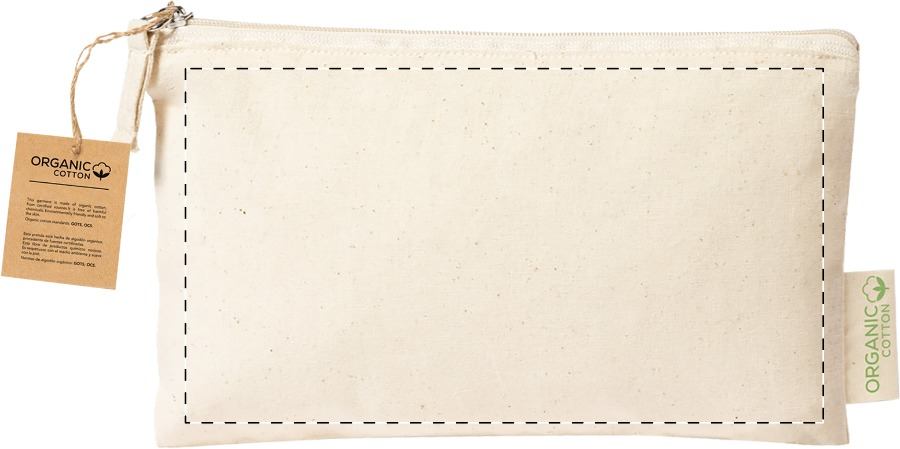Trousse in 100% cotone organico da 180 g/m² con cerniera ed etichetta cotone organico.